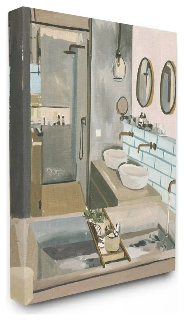 Running Bath Beige Abstract Bathroom Acrylic Painting,1pc, Each 11 X 14