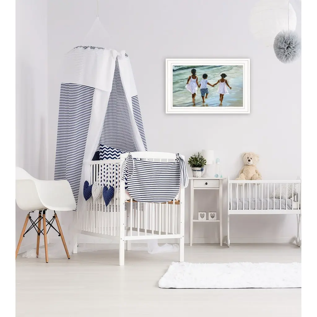 Unique and decorative, this running on the beach 2 white framed print wall art will leave a lasting impression. This print is a visual artistic expression that allows you to decorate your space in style. Reproduced for you on paper, this hanging decorative accent will be a trendy and fashionable way to dress your walls. Hang on your wall to add some up to date fashion and decoration. Instantly liven up your space with this art that brings color and dimension to your walls. 15" H x 11" W x 1" D