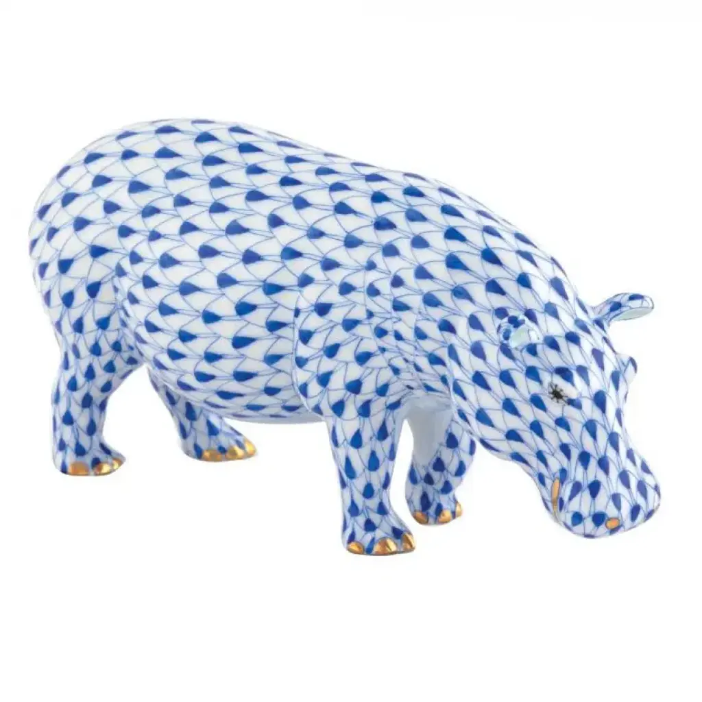 Endearing animals meek and bold, large and small, demure and majestic eagerly await the chance to melt your heart and warm your home. Each is brought to life by the skilled hands of artisans crafting and painting these charming porcelain creatures. The famous fishnet décor adorning many of the animals took form in 1858 when a Herend painter became inspired by a fishscale design he saw on a Chinese porcelain plate and painted a similar pattern onto a rooster figurine to imitate feathers. The rest is history, with the fishnet design now a Herend signature prized worldwide. Now the biggest porcelain manufactory in Europe, Herend was founded in 1826 to produce earthenware in the small Hungarian village for which it was named. At the time, Hungary was flooded with low-cost pottery, but in 1839, Mor Fischer became the Manufactory’s new owner and he decided to focus on producing dinnerware replacement pieces for Europe’s royal families to complement their valuable porcelain patterns from Germany and the Far East. As his client base grew, Fischer commissioned his artists to begin designing dinnerware patterns of their own. Queen Victoria’s 1851 purchase of a large set for Windsor Castle was a milestone, setting the stage for aristocrats throughout Europe to clamor for Herend in their estates. In the 1850s, Herend added meticulously-crafted figurines to its creations. Herend’s trademark fishnet pattern, which is widely recognized and prized as Herend’s signature design, started in 1858 when an artist who was intrigued with a Chinese plate’s fish scale design painted it onto a rooster figurine to imitate feathers.
