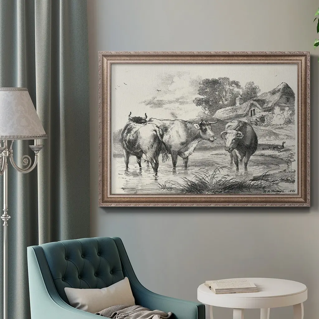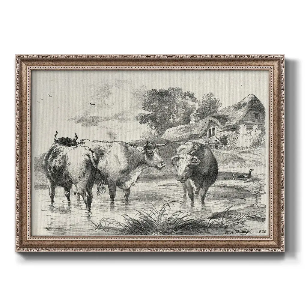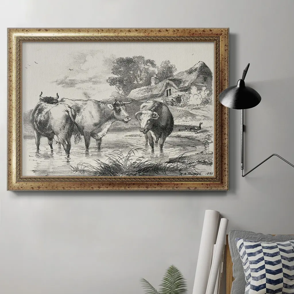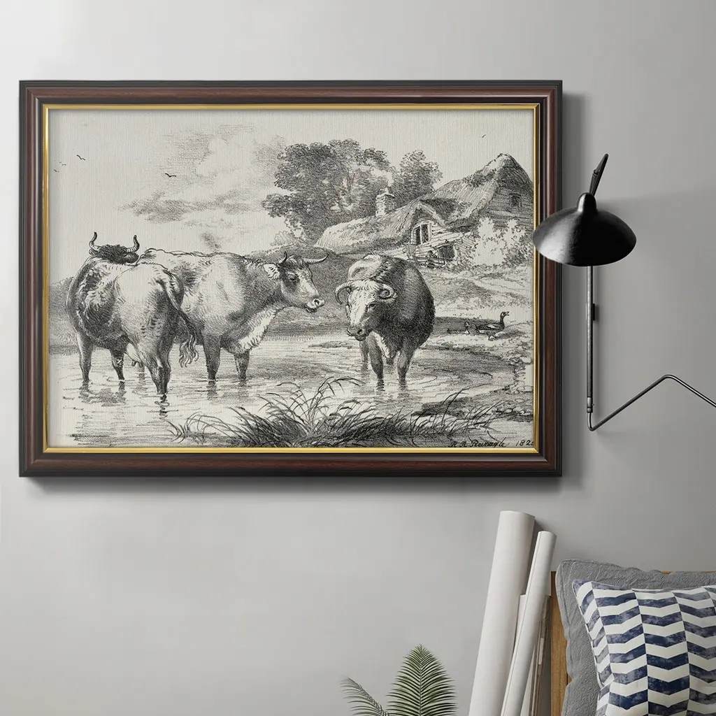 Rural Charms I Premium Framed Canvas- Ready to Hang A Premium Framed Canvas created to last. Framed in distressed wood and available in an array of sizes and colors Featuring a beveled a solid wood stretcher bar, each piece comes ready to hand 3 SIZES AVAILABLE 16''X20'' - Overall Size 18'X27'' - Overall Size 24''x36'' - Overall Size Each piece is made to order. Each piece comes with hanging hardware. Made in the USA Ready to Hang Giclee Paper Print Acrylic Glass Beveled Matt Board