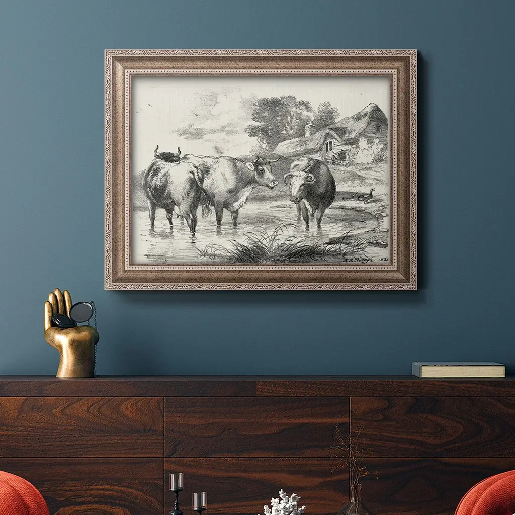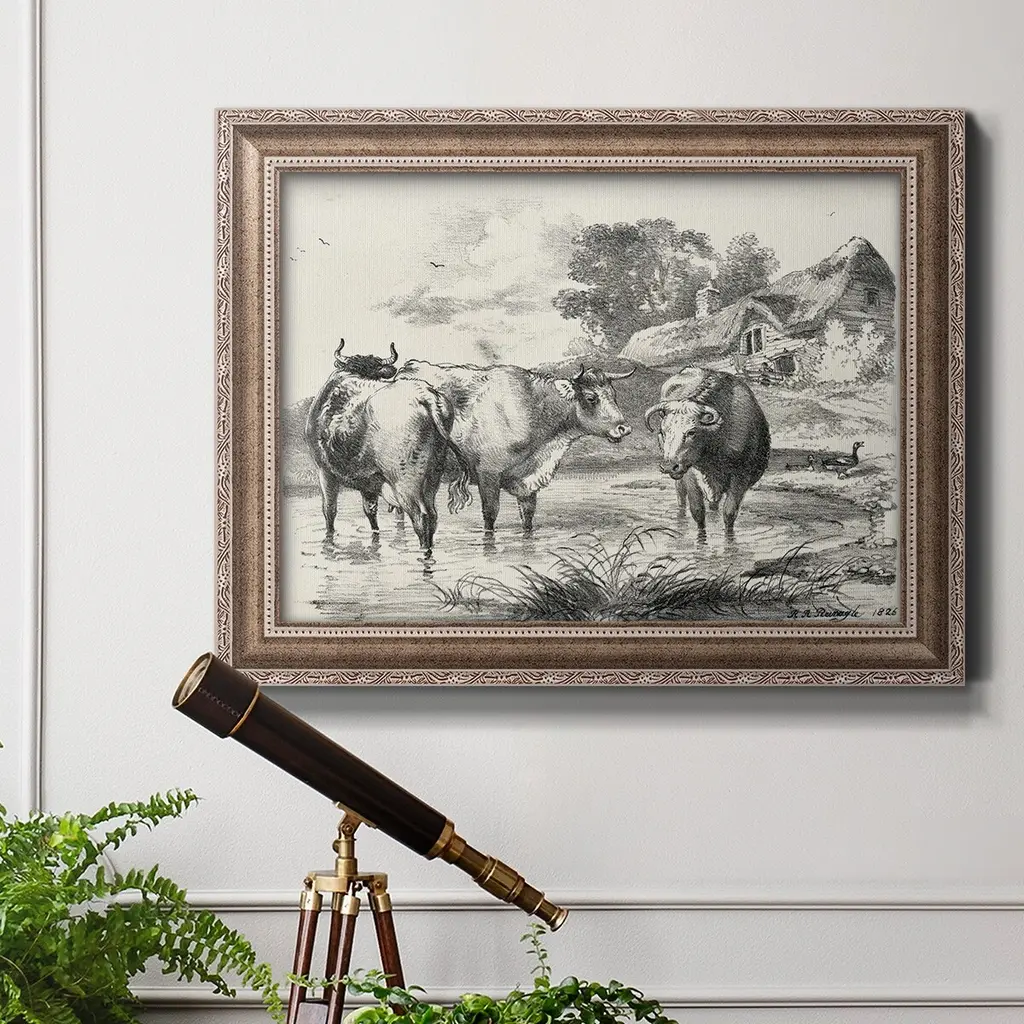 Rural Charms I Premium Framed Canvas- Ready to Hang A Premium Framed Canvas created to last. Framed in distressed wood and available in an array of sizes and colors Featuring a beveled a solid wood stretcher bar, each piece comes ready to hand 3 SIZES AVAILABLE 16''X20'' - Overall Size 18'X27'' - Overall Size 24''x36'' - Overall Size Each piece is made to order. Each piece comes with hanging hardware. Made in the USA Ready to Hang Giclee Paper Print Acrylic Glass Beveled Matt Board