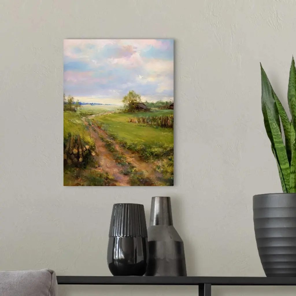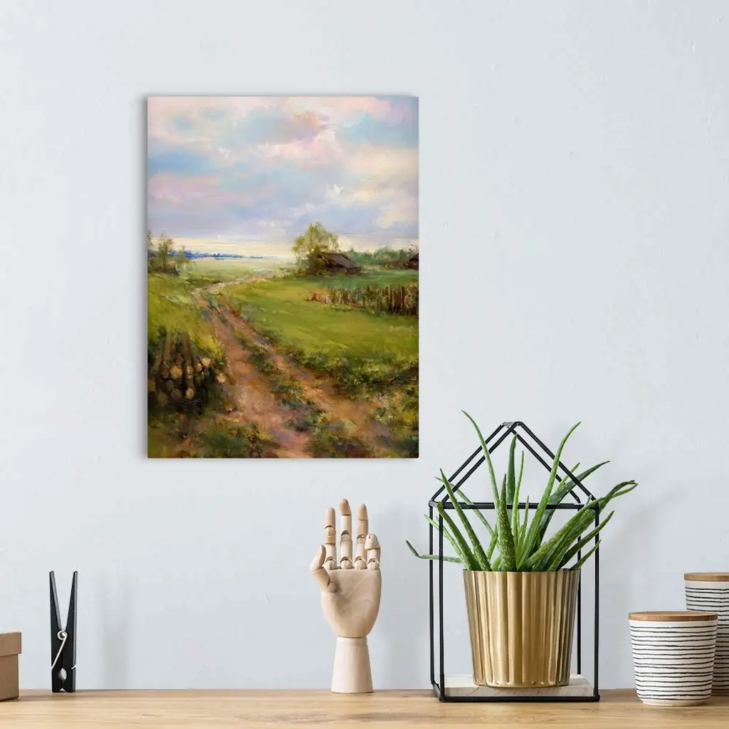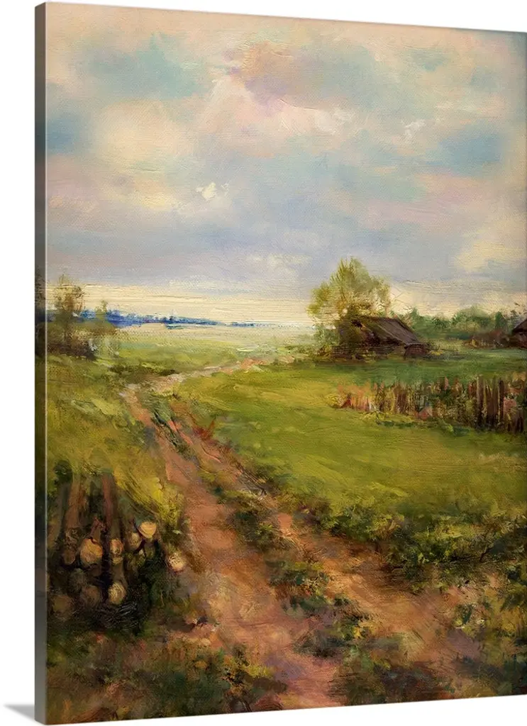Rural landscape, originally a painting of oil paints impasto on canvas.