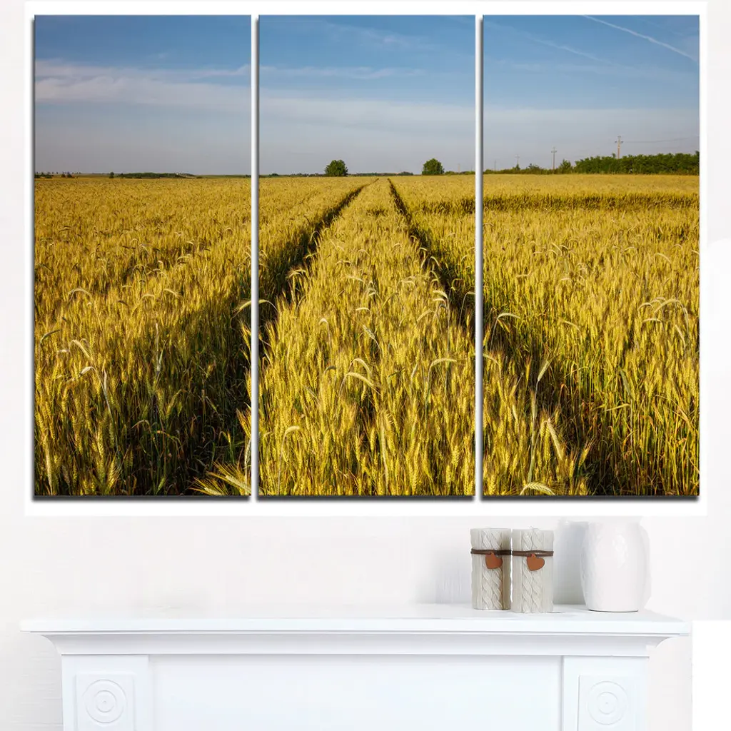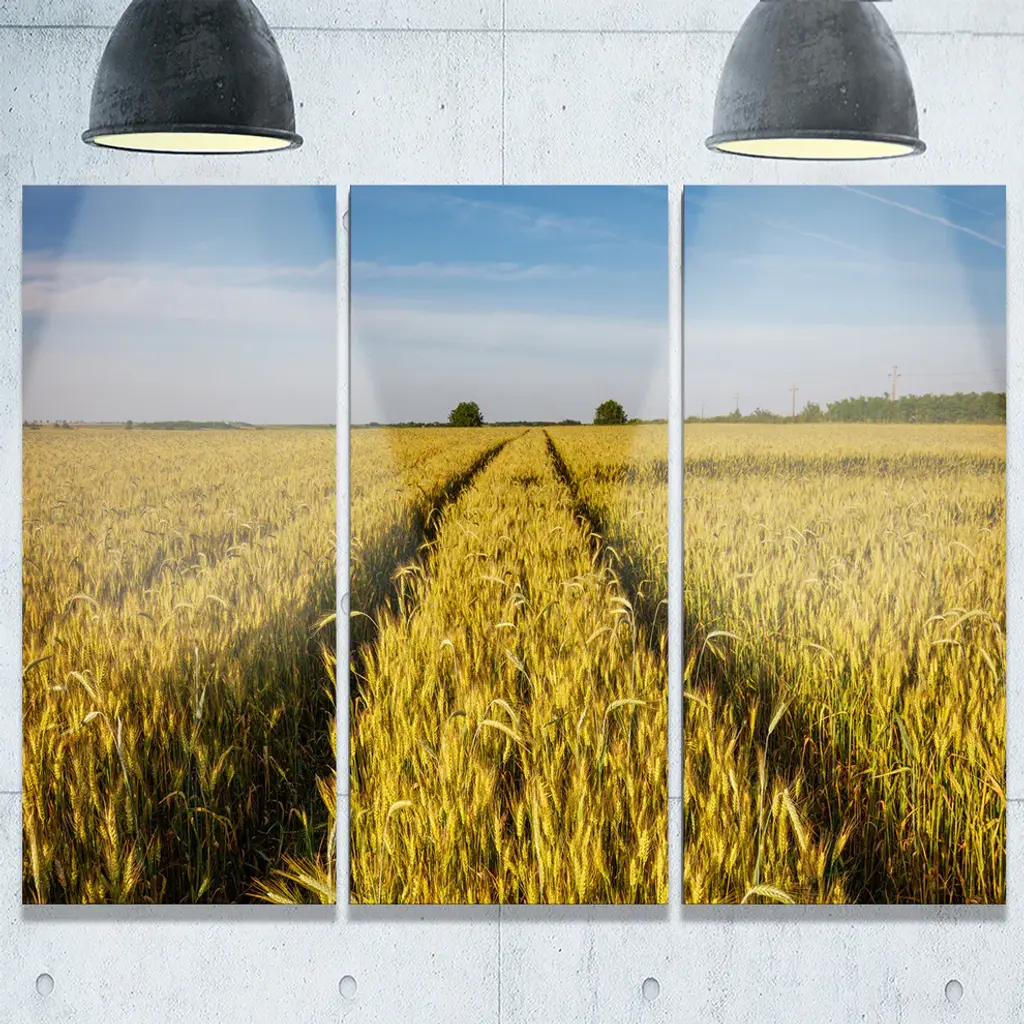 "Rural Road Through Wheat Field" Metal Wall Art, 3 Panels, 36"x28"