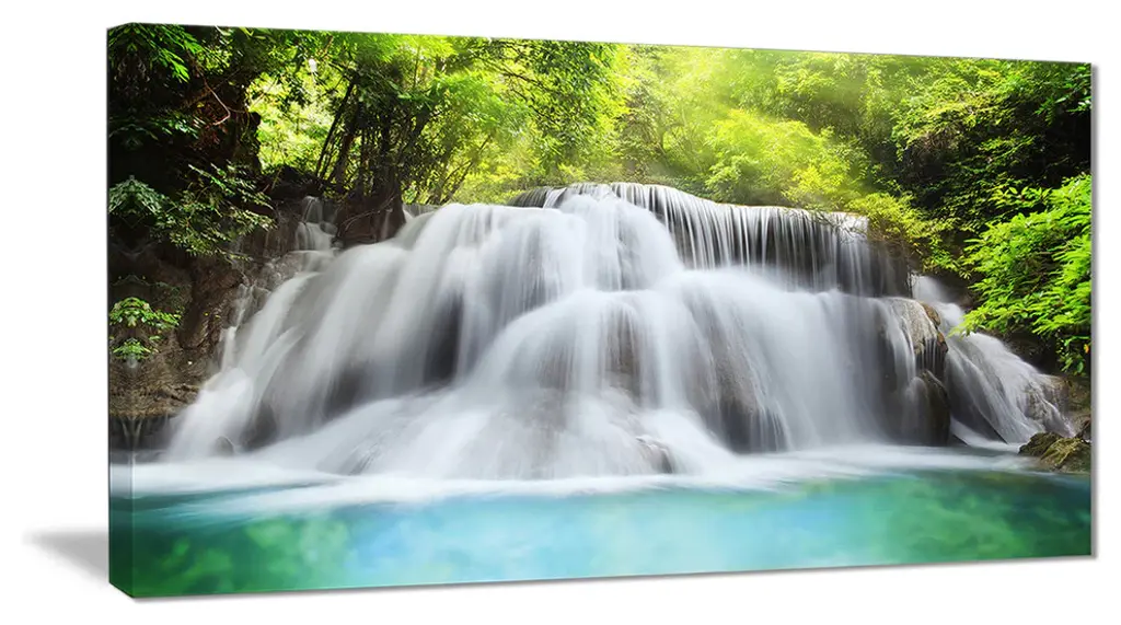 The Rushing Huai Mae Kamin Waterfall canvas art print is sure to make an impression on anyone who sees it. This artwork is gallery wrapped around a 1-inch solid wood frame and arrives carefully packaged and entirely ready to hang on the wall. Design Art only uses the highest resolution and pigments to ensure a crisp colorful print that is never faded or pixelated. This artwork is sure to be a conversation starter in any home or office.