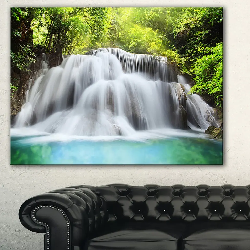 The Rushing Huai Mae Kamin Waterfall canvas art print is sure to make an impression on anyone who sees it. This artwork is gallery wrapped around a 1-inch solid wood frame and arrives carefully packaged and entirely ready to hang on the wall. Design Art only uses the highest resolution and pigments to ensure a crisp colorful print that is never faded or pixelated. This artwork is sure to be a conversation starter in any home or office.