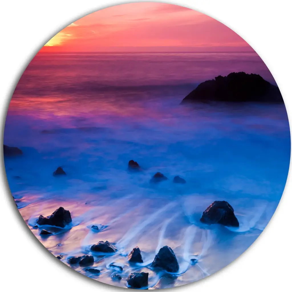 Bring Contemporary Abstraction to your home with this large Circle Metal wall art. This Rushing Waves at Beach Magoito Sintra Metal Artwork makes it the focal point of any room or office. - White Gloss Coating ensures colors are extra vibrant with light reflection.- Aluminum grade Sheet Metal with 1 inch mounting frame on the back giving the illusion that the artwork is floating on the wall..- Mounting Brackets are included along with instructions.- High Quality Digital images are created directly into a glossy aluminum panel producing a stunning and captivating print into the glossy finish of the metal.- Water, Fire and Scratch resistant HD Aluminum panels.- Looks better than any photo paper and guaranteed to last at least 20 years- Easy to clean with a microfiber cloth. Colors are far superior to regular Canvas Art. - Easy to Hang