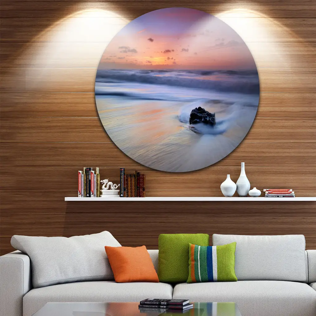 Bring Contemporary Abstraction to your home with this large Circle Metal wall art. This Rushing Waves at Beach Magoito Sintra Metal Artwork makes it the focal point of any room or office. - White Gloss Coating ensures colors are extra vibrant with light reflection.- Aluminum grade Sheet Metal with 1 inch mounting frame on the back giving the illusion that the artwork is floating on the wall..- Mounting Brackets are included along with instructions.- High Quality Digital images are created directly into a glossy aluminum panel producing a stunning and captivating print into the glossy finish of the metal.- Water, Fire and Scratch resistant HD Aluminum panels.- Looks better than any photo paper and guaranteed to last at least 20 years- Easy to clean with a microfiber cloth. Colors are far superior to regular Canvas Art. - Easy to Hang