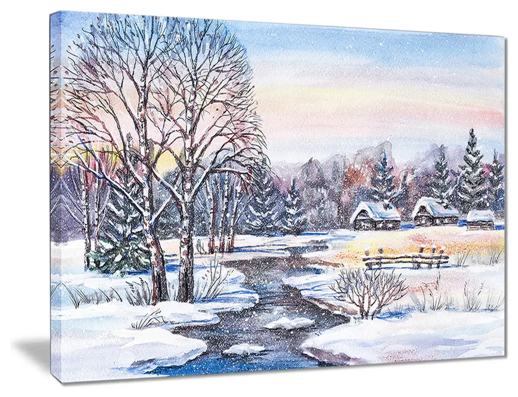 The Russian Winter Village canvas art print is sure to make an impression on anyone who sees it. This artwork is gallery wrapped around a 1-inch solid wood frame and arrives carefully packaged and entirely ready to hang on the wall. Design Art only uses the highest resolution and pigments to ensure a crisp colorful print that is never faded or pixelated. This artwork is sure to be a conversation starter in any home or office.