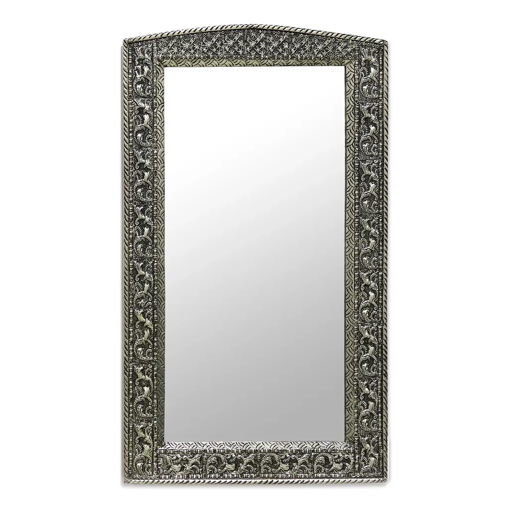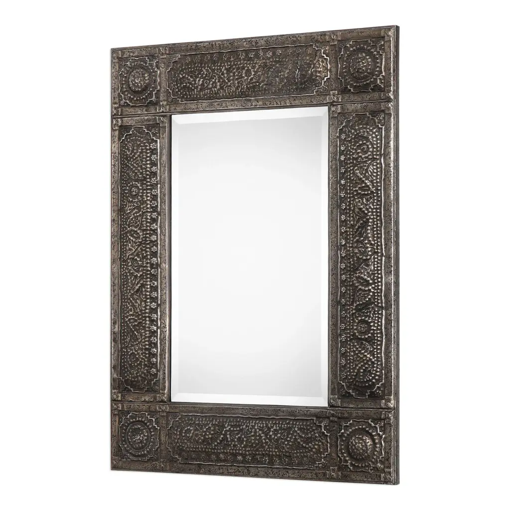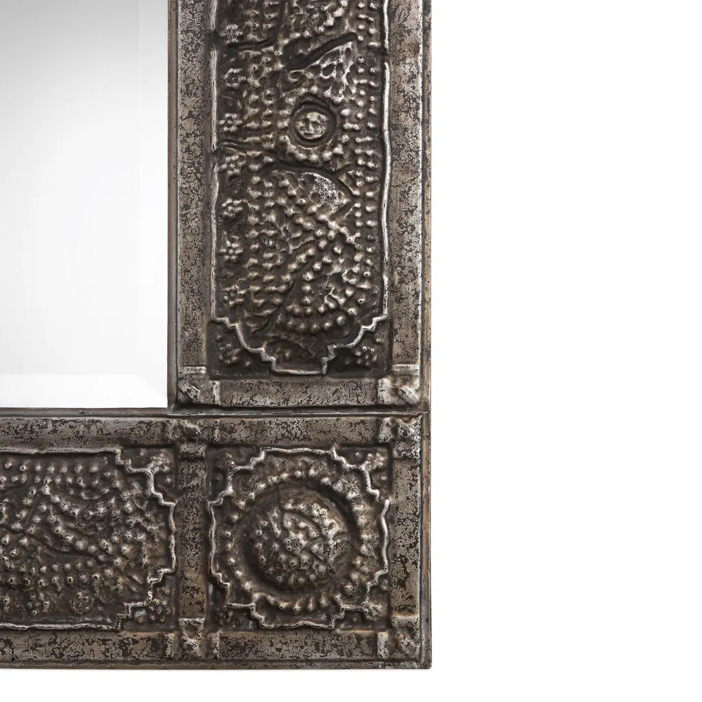 This embossed metal frame is finished in a heavily antiqued rust gray wash with silver undertones and black distressing. The mirror has a generous 1.25" bevel. May be hung either vertically or horizontally. Antique, vintage, designer floor samples & new products from one of the hottest Retail and To The Trade Home Furnishings showrooms in the country. Located in Chicago's chic Roscoe Village, Kenneth Ludwig Chicago carries the best offerings in furniture, accessories, artwork & textiles. Offerings are always fresh & always inspiring! Quite often ( due to a discontinued style, fabric or frame ) they must sell off their showroom floor samples. You receive first quality pieces at amazing prices. Check back weekly for new inventory added.