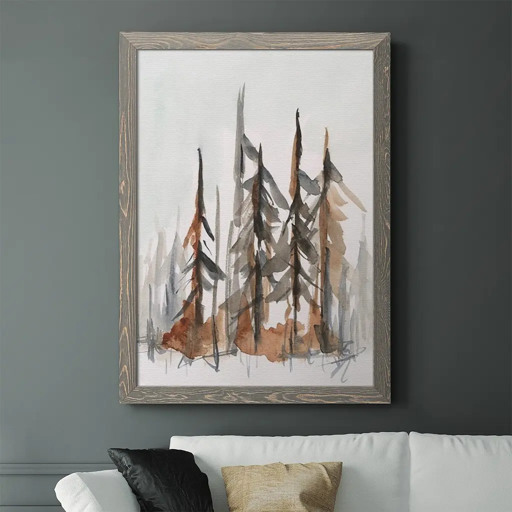 Rustic Evergreens I-Premium Framed Canvas - Ready To Hang - 27.5x37.5 - Grey