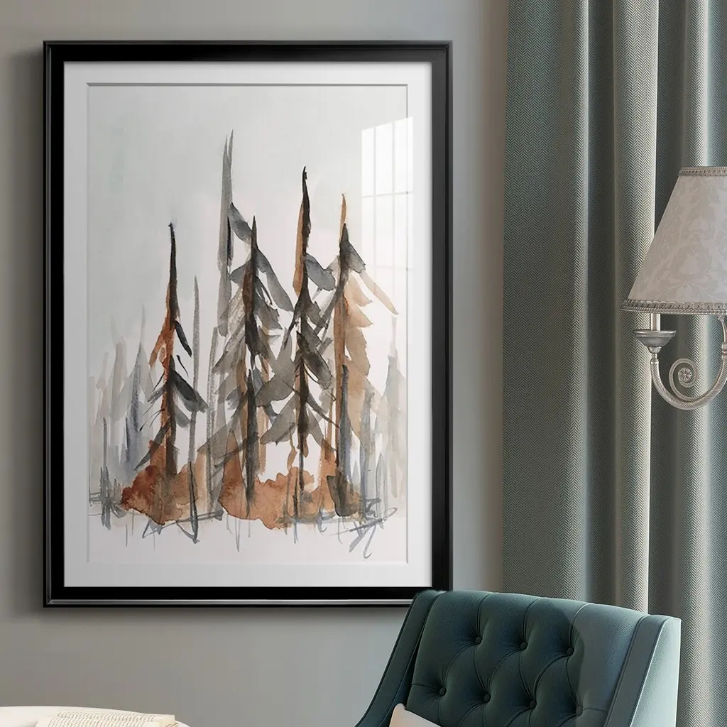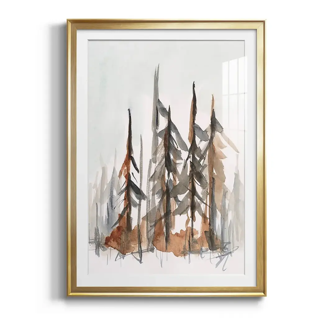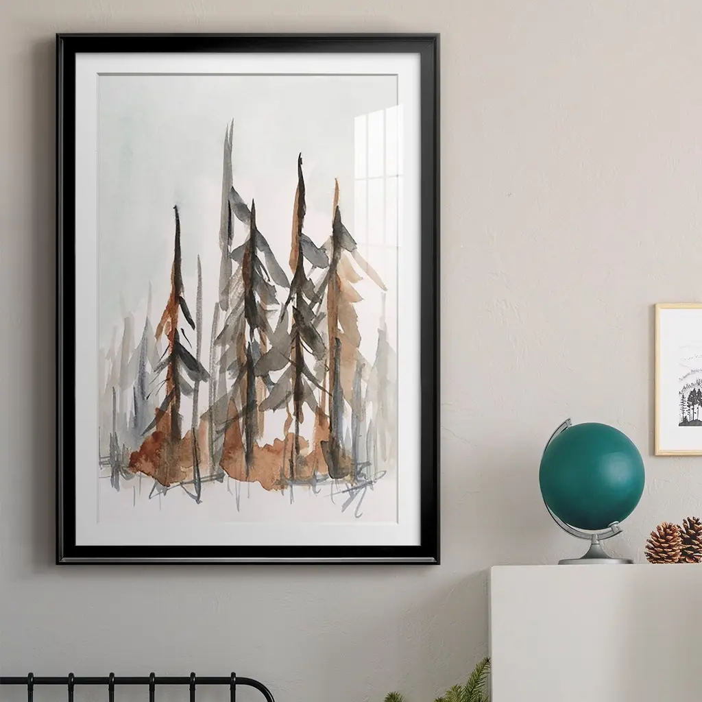 Rustic Evergreens I Premium Framed Print - Ready to Hang A Premium Framed Print created to last. Framed in distressed wood and available in an array of sizes and colors Featuring a beveled a solid wood stretcher bar, each piece comes ready to hand 4 SIZES AVAILABLE 30.5''X42.5'' - Overall Size 26.5'X36.5'' - Overall Size 22.5''x30.5'' - Overall Size 18.5''x24.5'' - Overall Size Each piece is made to order. Each piece comes with hanging hardware. Made in the USA Ready to Hang Giclee Paper Print Acrylic Glass Beveled Matt Board