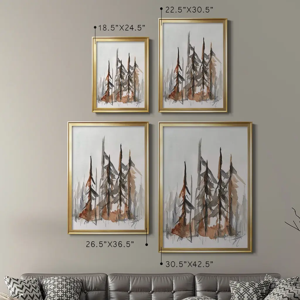 Rustic Evergreens I Premium Framed Print - Ready to Hang A Premium Framed Print created to last. Framed in distressed wood and available in an array of sizes and colors Featuring a beveled a solid wood stretcher bar, each piece comes ready to hand 4 SIZES AVAILABLE 30.5''X42.5'' - Overall Size 26.5'X36.5'' - Overall Size 22.5''x30.5'' - Overall Size 18.5''x24.5'' - Overall Size Each piece is made to order. Each piece comes with hanging hardware. Made in the USA Ready to Hang