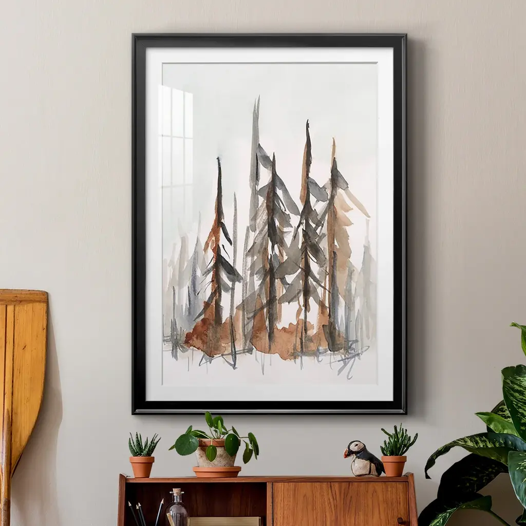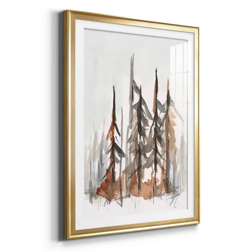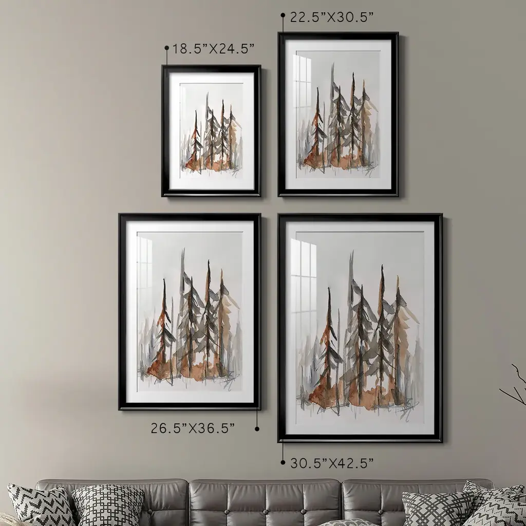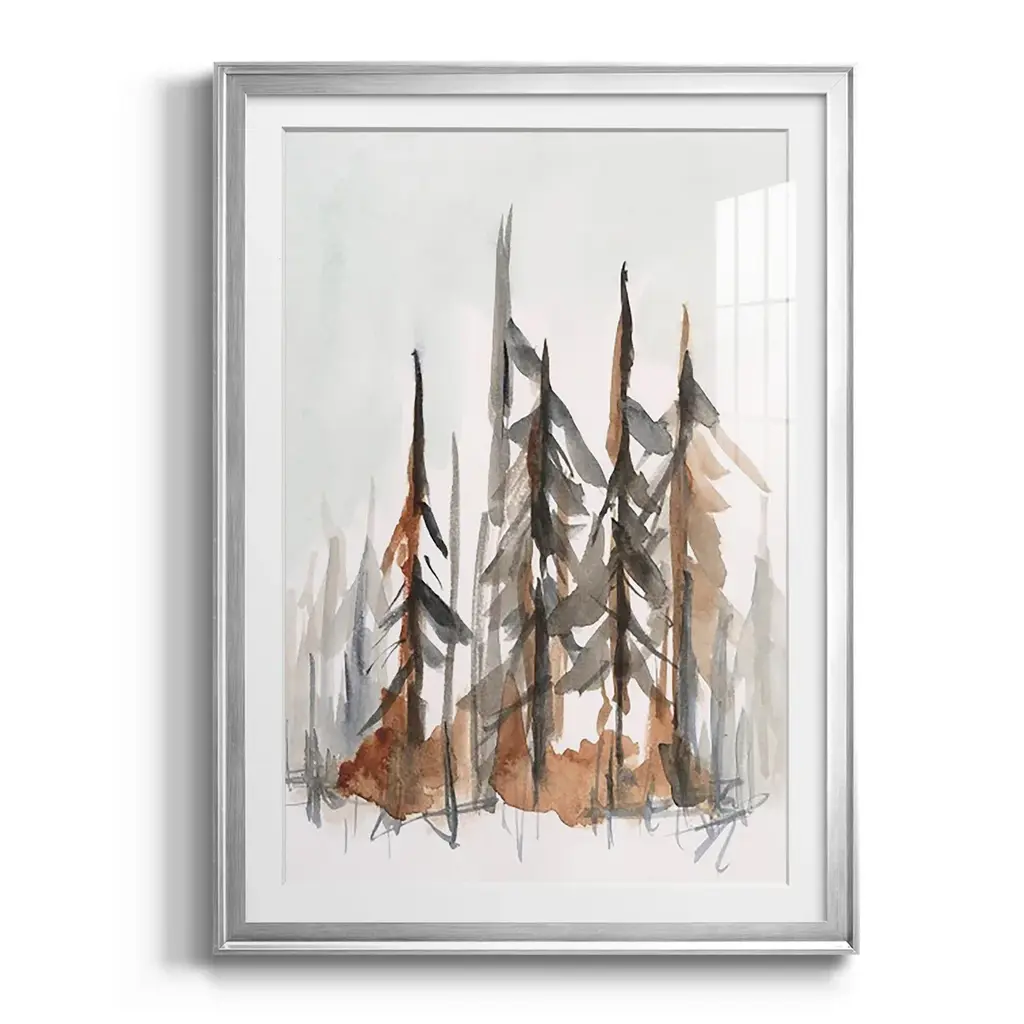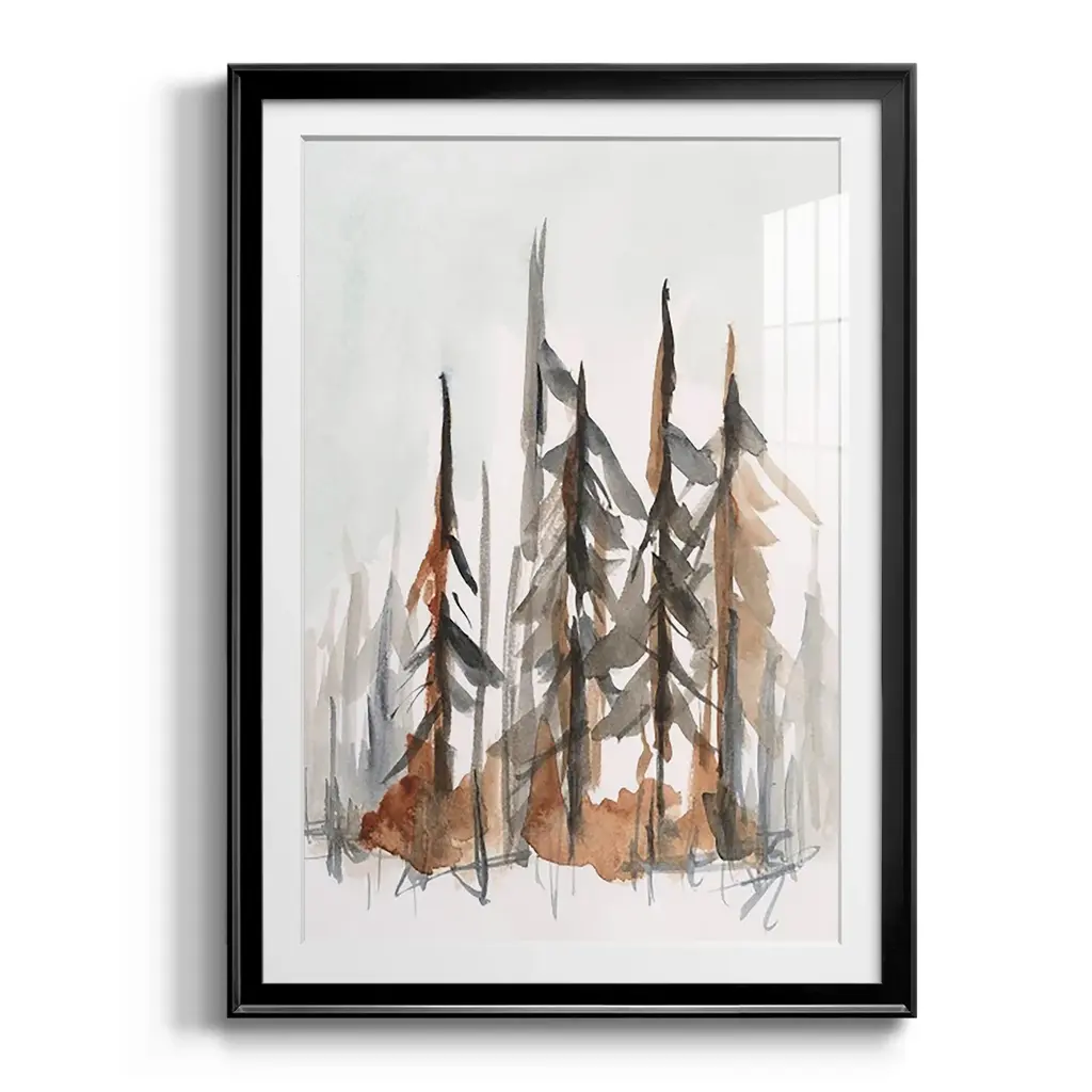 Rustic Evergreens I Premium Framed Print - Ready to Hang A Premium Framed Print created to last. Framed in distressed wood and available in an array of sizes and colors Featuring a beveled a solid wood stretcher bar, each piece comes ready to hand 4 SIZES AVAILABLE 30.5''X42.5'' - Overall Size 26.5'X36.5'' - Overall Size 22.5''x30.5'' - Overall Size 18.5''x24.5'' - Overall Size Each piece is made to order. Each piece comes with hanging hardware. Made in the USA Ready to Hang Giclee Paper Print Acrylic Glass Beveled Matt Board