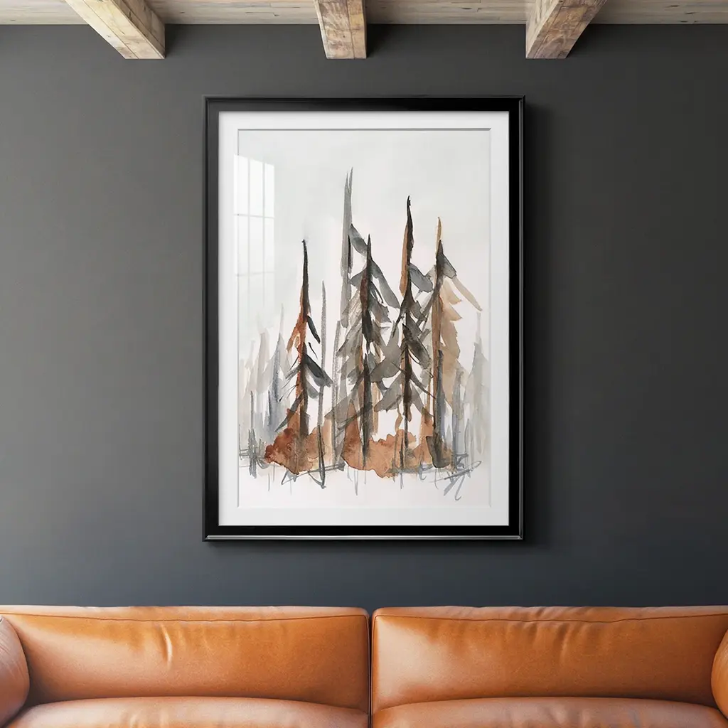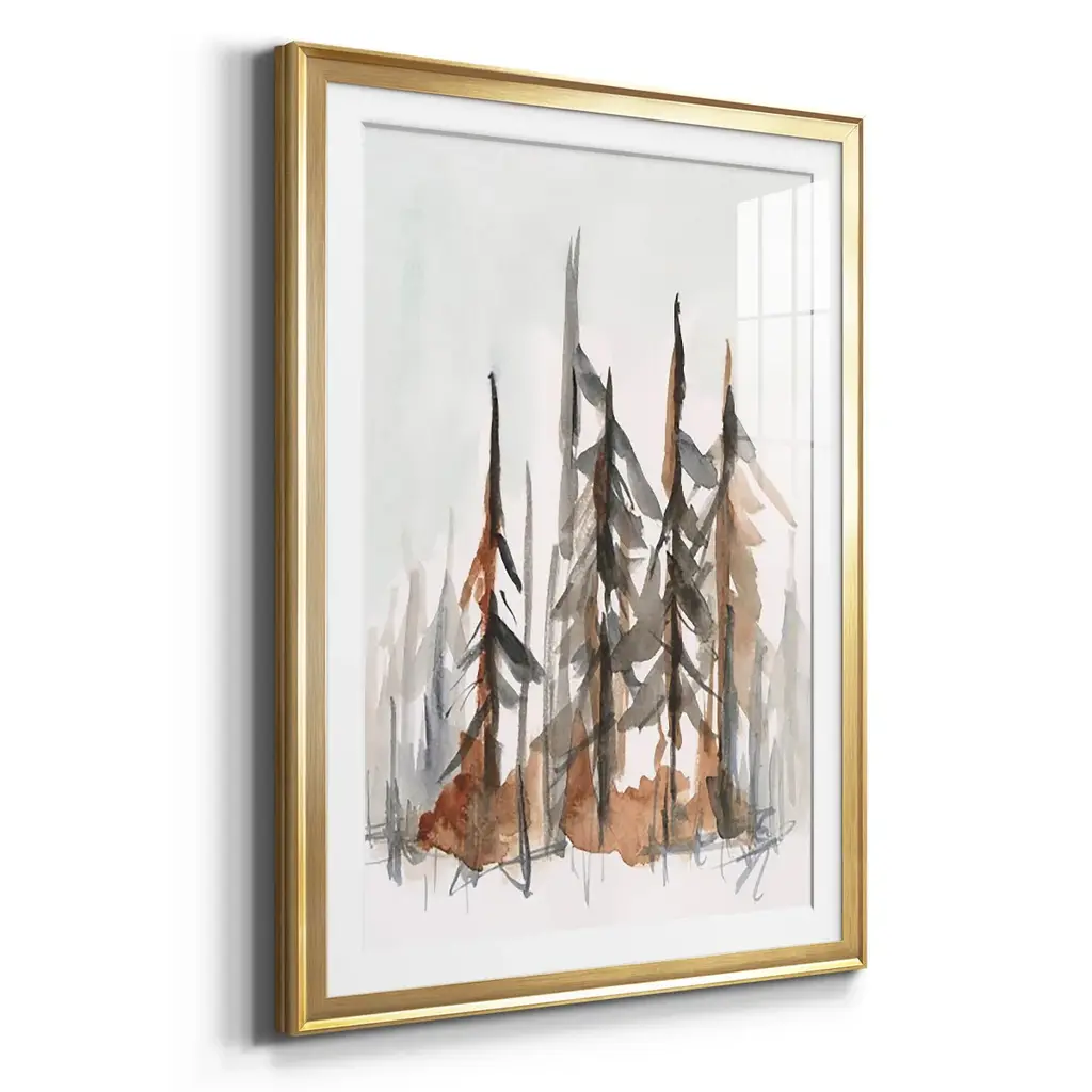 Rustic Evergreens I Premium Framed Print - Ready to Hang A Premium Framed Print created to last. Framed in distressed wood and available in an array of sizes and colors Featuring a beveled a solid wood stretcher bar, each piece comes ready to hand 4 SIZES AVAILABLE 30.5''X42.5'' - Overall Size 26.5'X36.5'' - Overall Size 22.5''x30.5'' - Overall Size 18.5''x24.5'' - Overall Size Each piece is made to order. Each piece comes with hanging hardware. Made in the USA Ready to Hang Giclee Paper Print Acrylic Glass Beveled Matt Board
