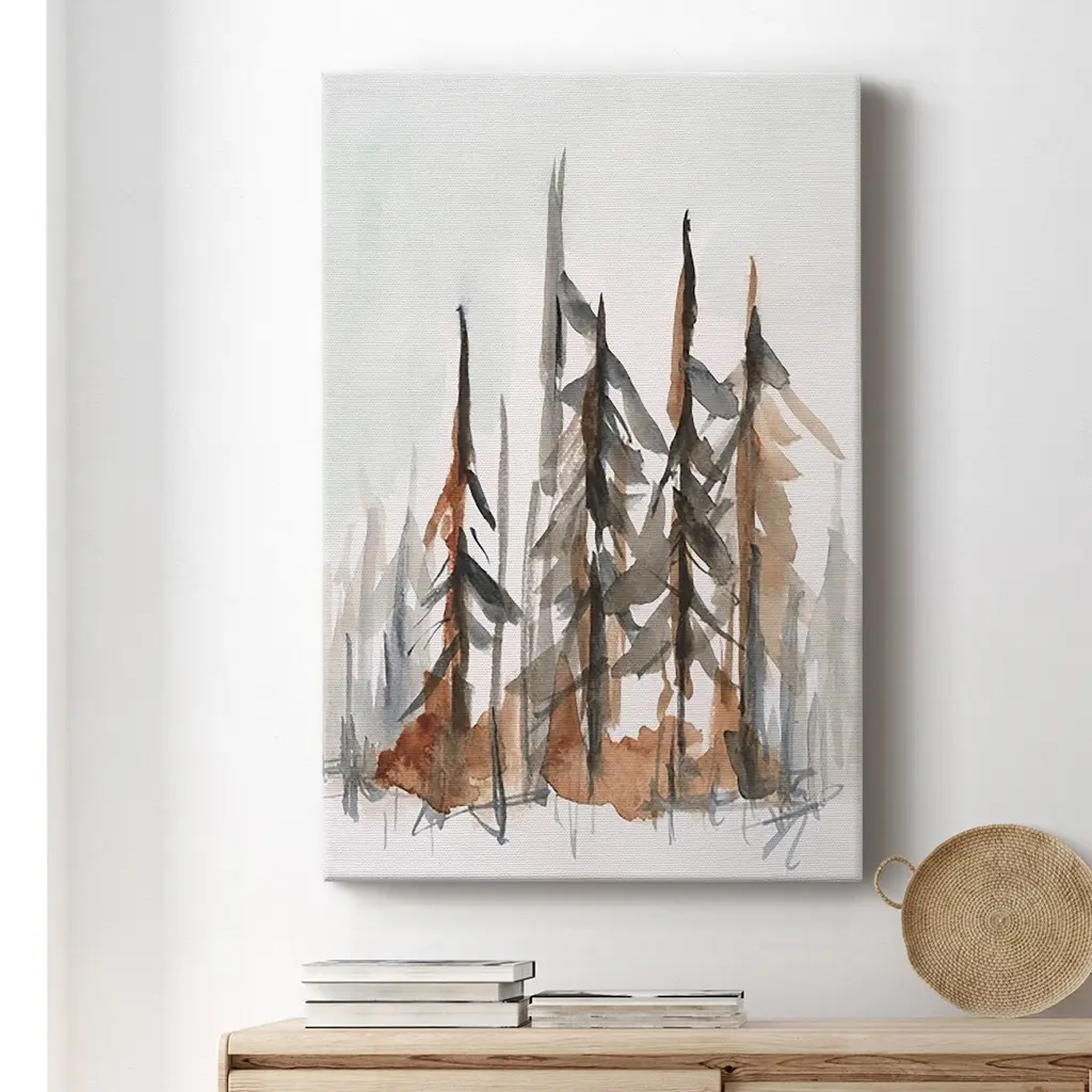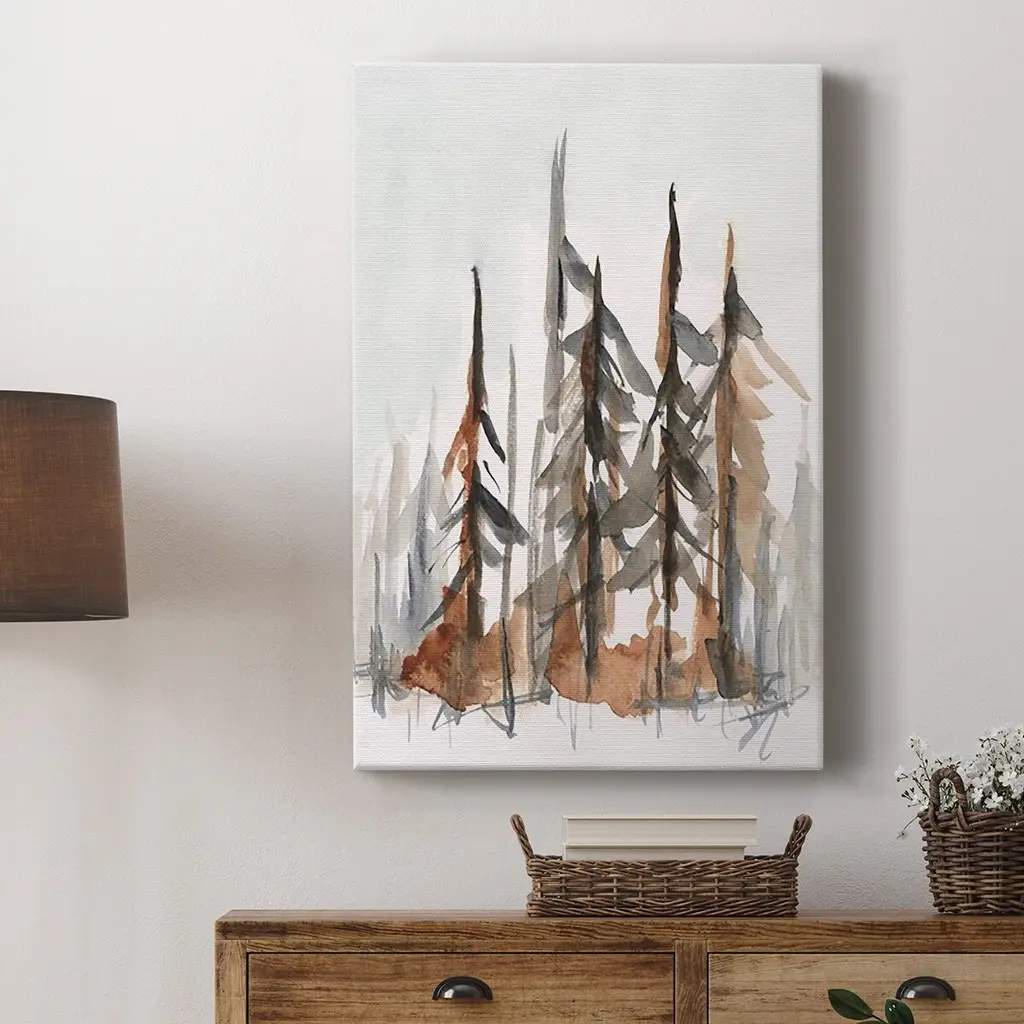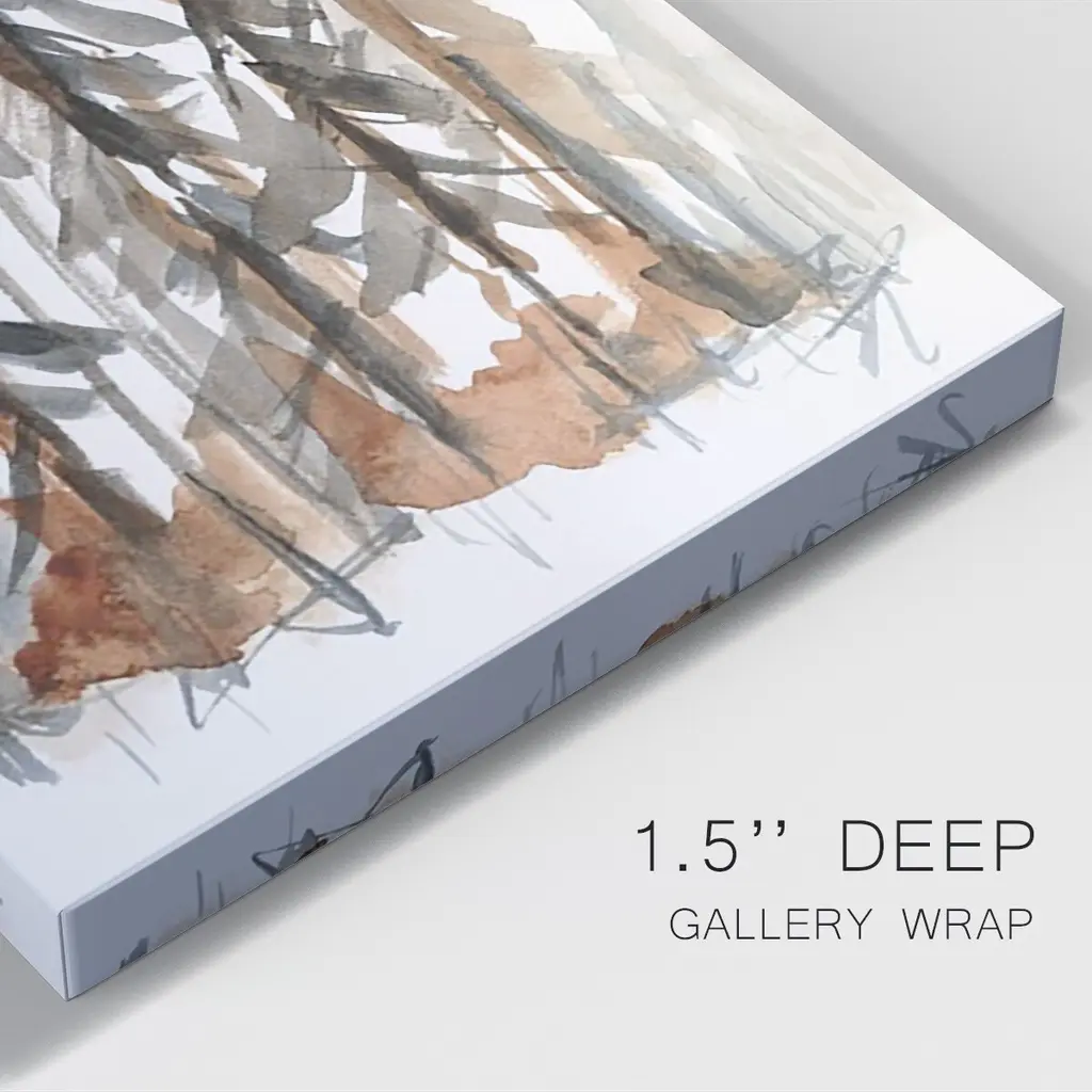 Rustic Evergreens I Premium Gallery Wrapped Canvas - Ready to Hang A premium hand stretched gallery wrapped canvas print created to last. Featuring a beveled a solid wood stretcher bar, each piece comes ready to hand 6 SIZES AVAILABLE 8''X12'' - Overall Size 12''X18'' - Overall Size 18''X27'' - Overall Size 24''x36'' - Overall Size 32''x48'' - Overall Size 40''x60'' - Overall Size Each piece is made to order. Built to Last Each piece comes ready to hang Solid wood stretcher Fade and Water resistant Made domestically