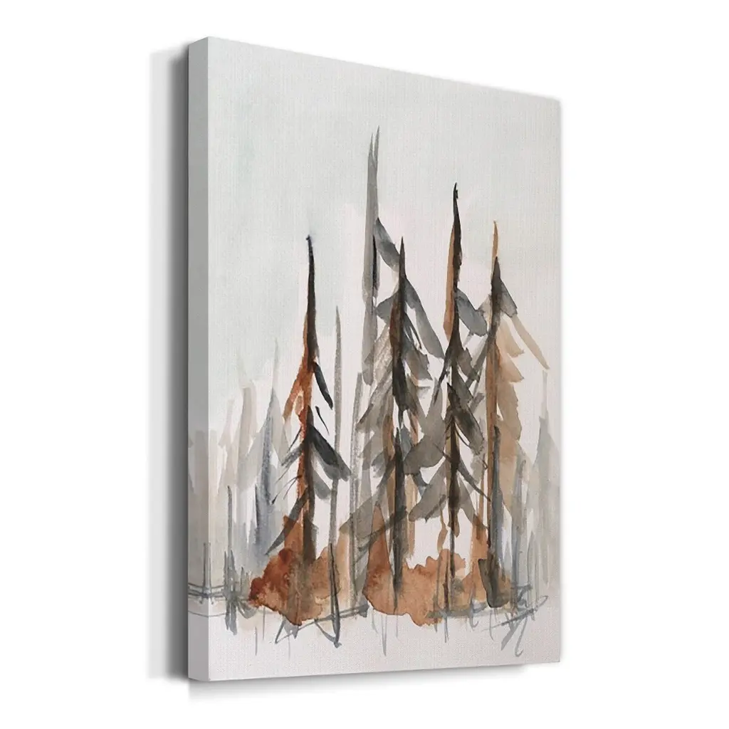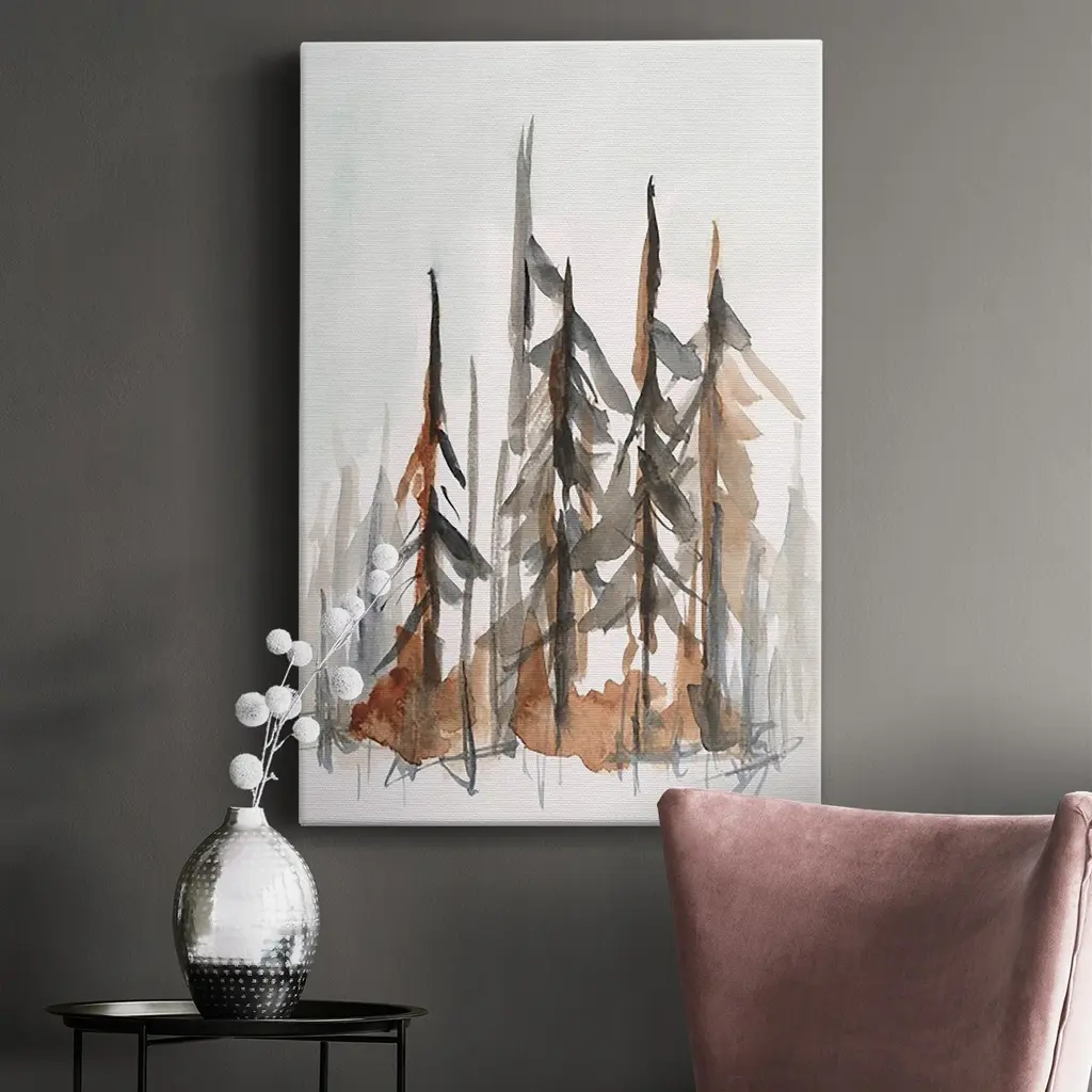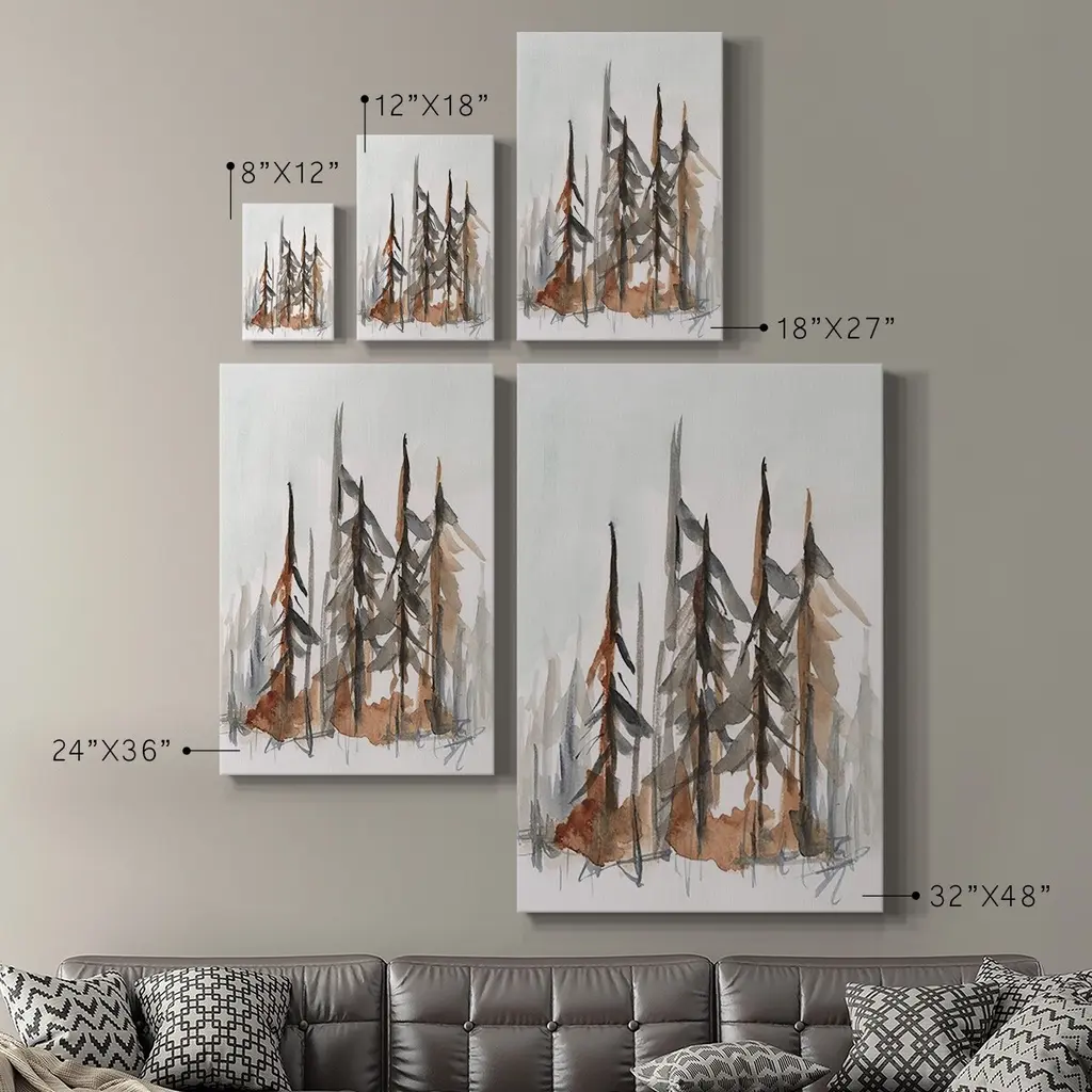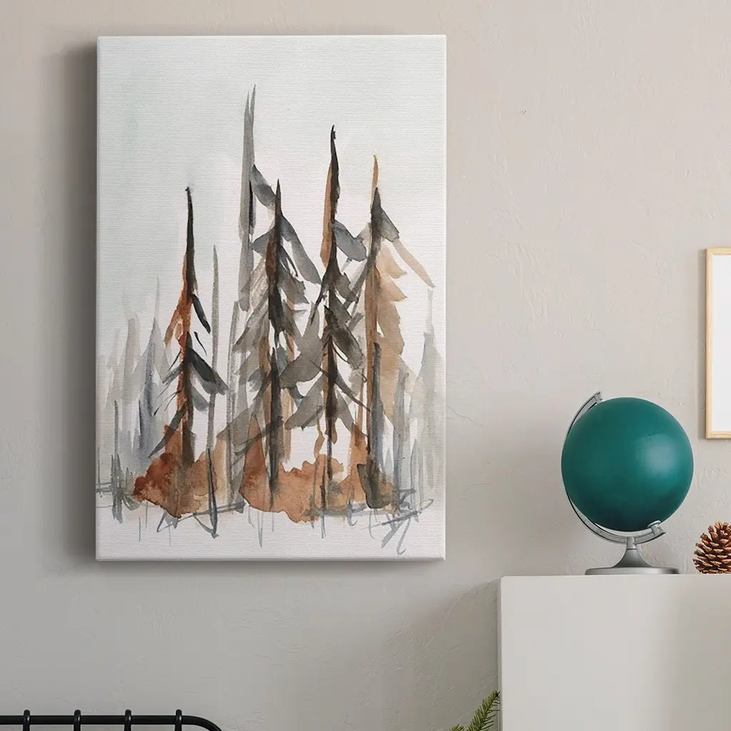 Rustic Evergreens I Premium Gallery Wrapped Canvas - Ready to Hang A premium hand stretched gallery wrapped canvas print created to last. Featuring a beveled a solid wood stretcher bar, each piece comes ready to hand 6 SIZES AVAILABLE 8''X12'' - Overall Size 12''X18'' - Overall Size 18''X27'' - Overall Size 24''x36'' - Overall Size 32''x48'' - Overall Size 40''x60'' - Overall Size Each piece is made to order. Built to Last Each piece comes ready to hang Solid wood stretcher Fade and Water resistant Made domestically