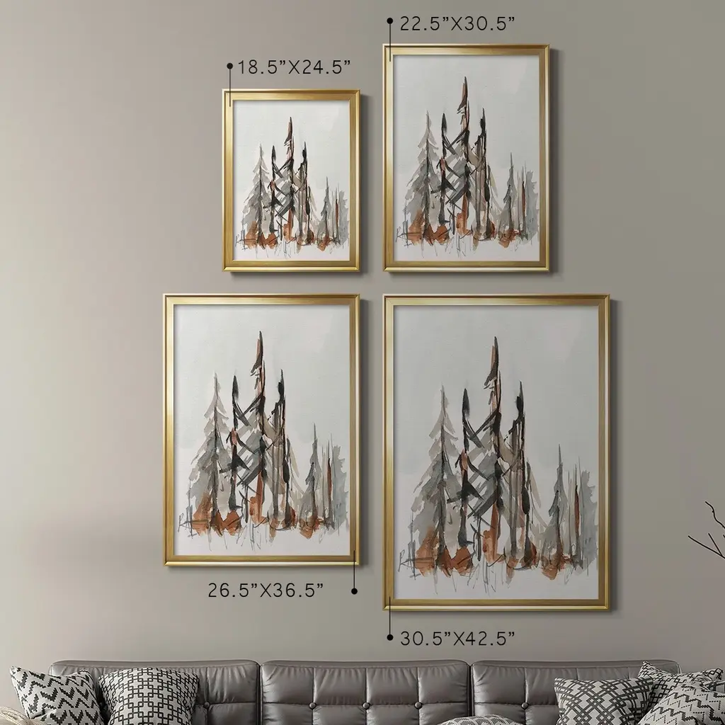 Rustic Evergreens II Premium Framed Print - Ready to Hang A Premium Framed Print created to last. Framed in distressed wood and available in an array of sizes and colors Featuring a beveled a solid wood stretcher bar, each piece comes ready to hand 4 SIZES AVAILABLE 30.5''X42.5'' - Overall Size 26.5'X36.5'' - Overall Size 22.5''x30.5'' - Overall Size 18.5''x24.5'' - Overall Size Each piece is made to order. Each piece comes with hanging hardware. Made in the USA Ready to Hang