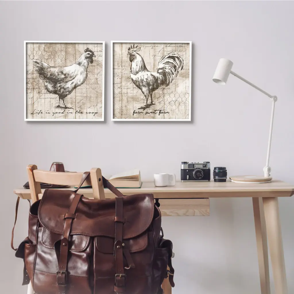 Rustic Hen Rooster Illustration Life Is Good Phrases,17 X 17
