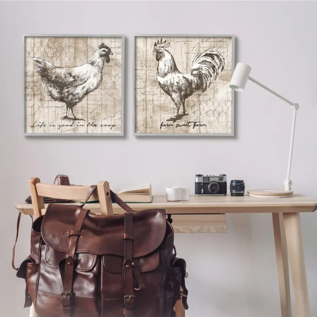 Rustic Hen Rooster Illustration Life Is Good Phrases,24 X 24