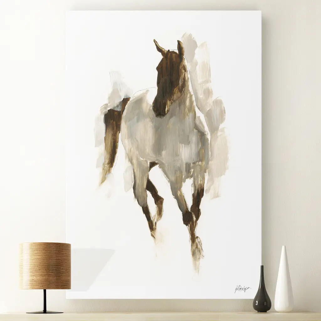 Rustic Horse I -Premium Gallery Wrapped Canvas - Ready to Hang A premium hand stretched gallery wrapped canvas print created to last. Featuring a beveled a solid wood stretcher bar, each piece comes ready to hand 5 SIZES AVAILABLE 8''X12'' - Overall Size 16''x20'' - Overall Size 18''x27'' - Overall Size 24''x36'' - Overall Size 32''x48'' - Overall Size Each piece is made to order. Built to Last Each piece comes ready to hang Solid wood stretcher Fade and Water resistant Made domestically