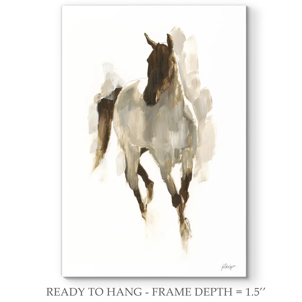 Rustic Horse I -Premium Gallery Wrapped Canvas - Ready to Hang A premium hand stretched gallery wrapped canvas print created to last. Featuring a beveled a solid wood stretcher bar, each piece comes ready to hand 5 SIZES AVAILABLE 8''X12'' - Overall Size 16''x20'' - Overall Size 18''x27'' - Overall Size 24''x36'' - Overall Size 32''x48'' - Overall Size Each piece is made to order. Built to Last Each piece comes ready to hang Solid wood stretcher Fade and Water resistant Made domestically
