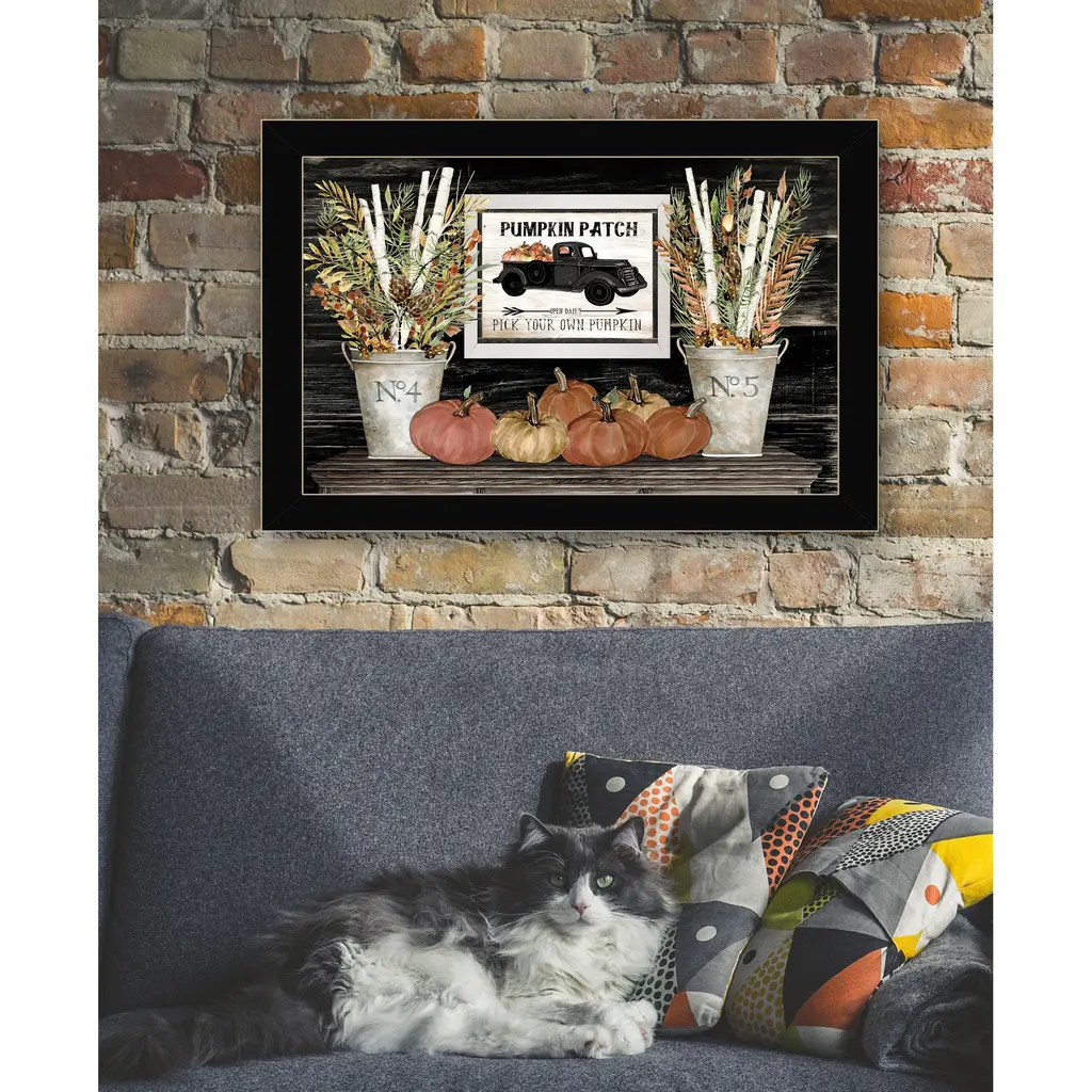 Add an air of fashion to your room and rejuvenate the space with this pumpkin patch still life 1 black framed print wall art. This print is a visual artistic expression that allows you to decorate your space in style. Reproduced for you on paper, this hanging decorative accent will be a trendy and fashionable way to dress your walls. Adding this hanging wall art to your space to make your room feel more finished and attractive. Instantly liven up your space with this art that brings color and dimension to your walls. 14" H x 20" W x 1" D