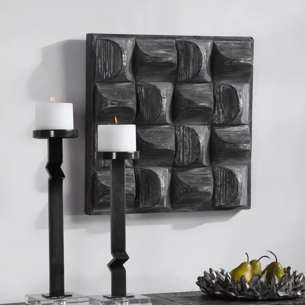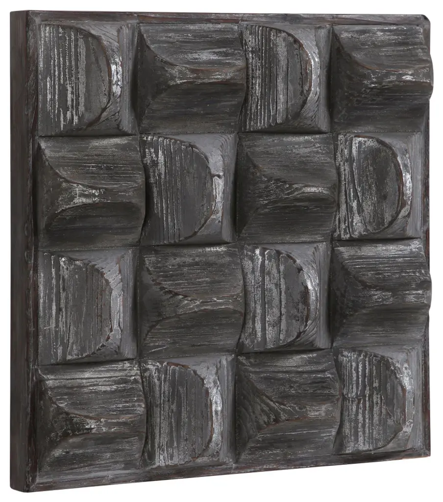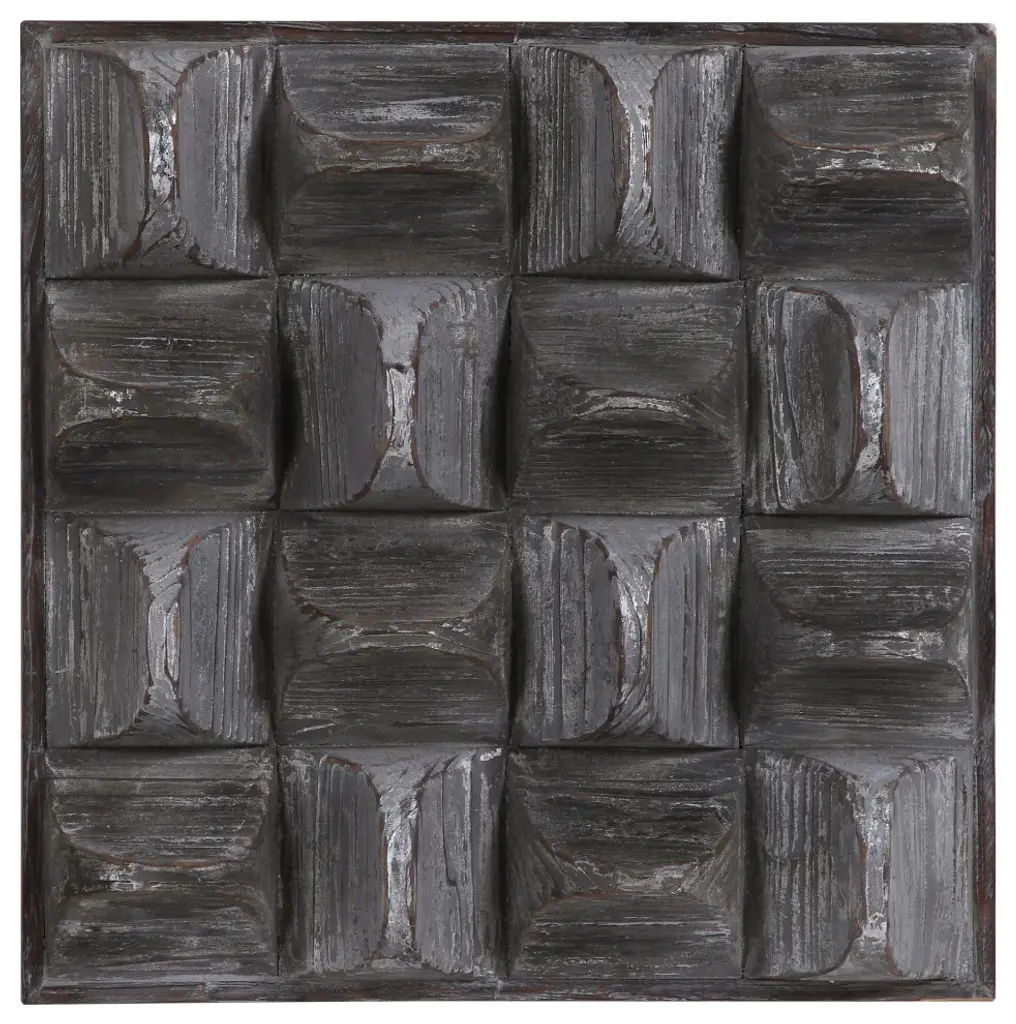 A Contemporary Take On Rustic Decor, This Wood Wall Panel Features 3-dimensional Scooped Fir Wood Blocks With A Distressed, Aged Gray Wash And Silver Highlights.• Includes two panels. Each is 20.1" square x 4.5" deep. Each weighs 5.5 lbs.• Hand Finished Fir Wood• Properly weighted hanging hardware attached.• Heirloom Quality - Expertly hand crafted and hand finished. Due to the hand crafted nature of this piece, each piece may have subtle differences.
