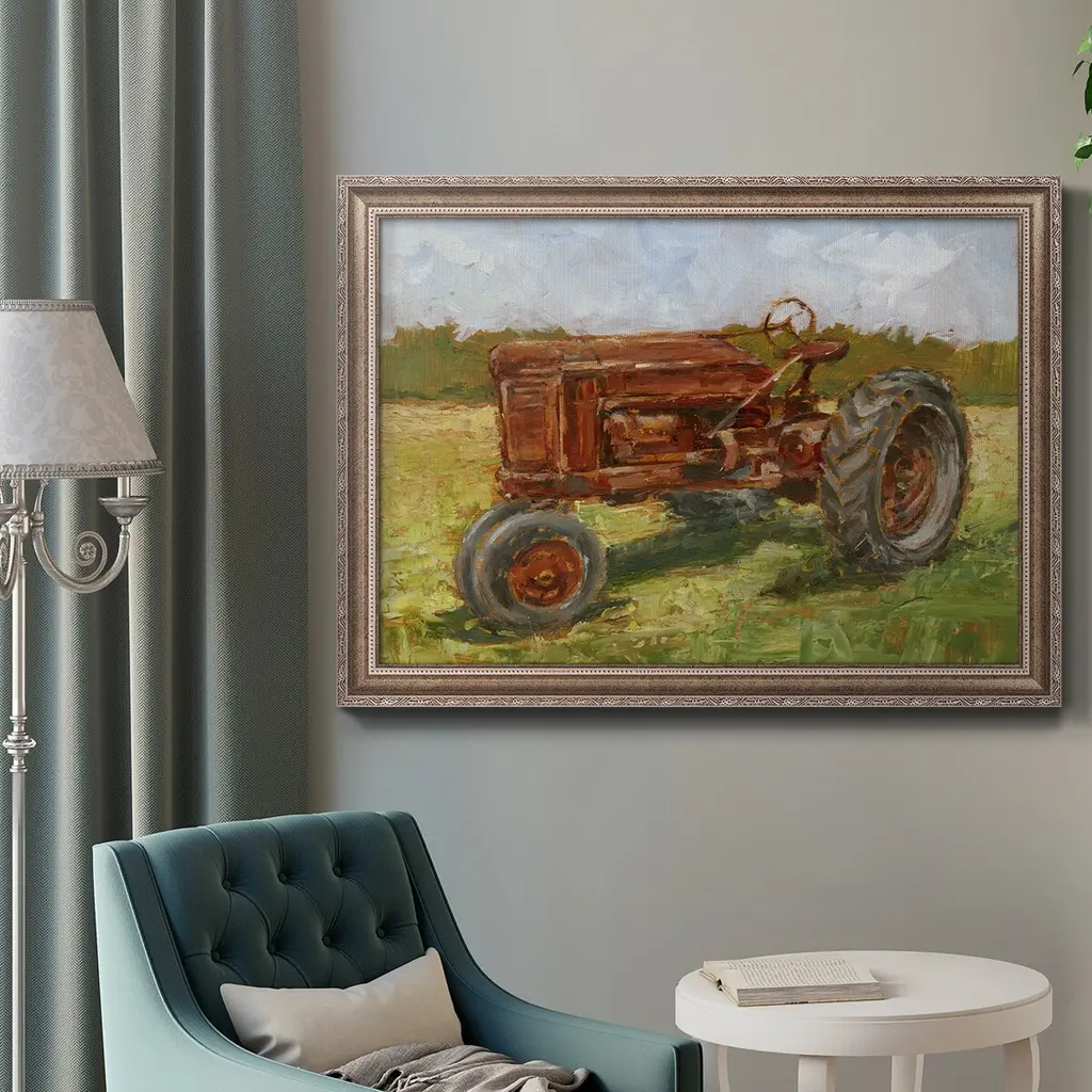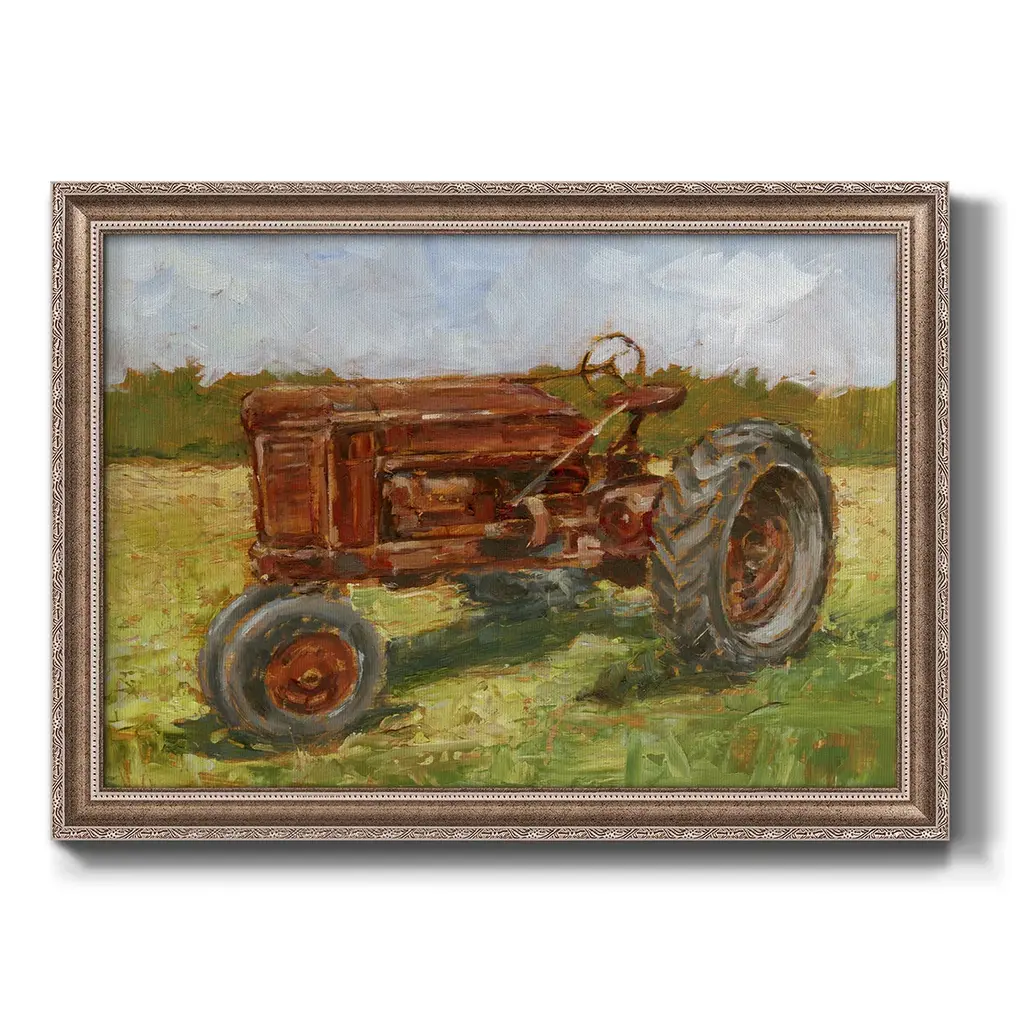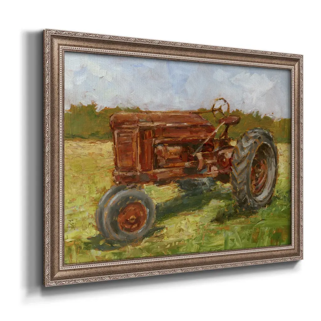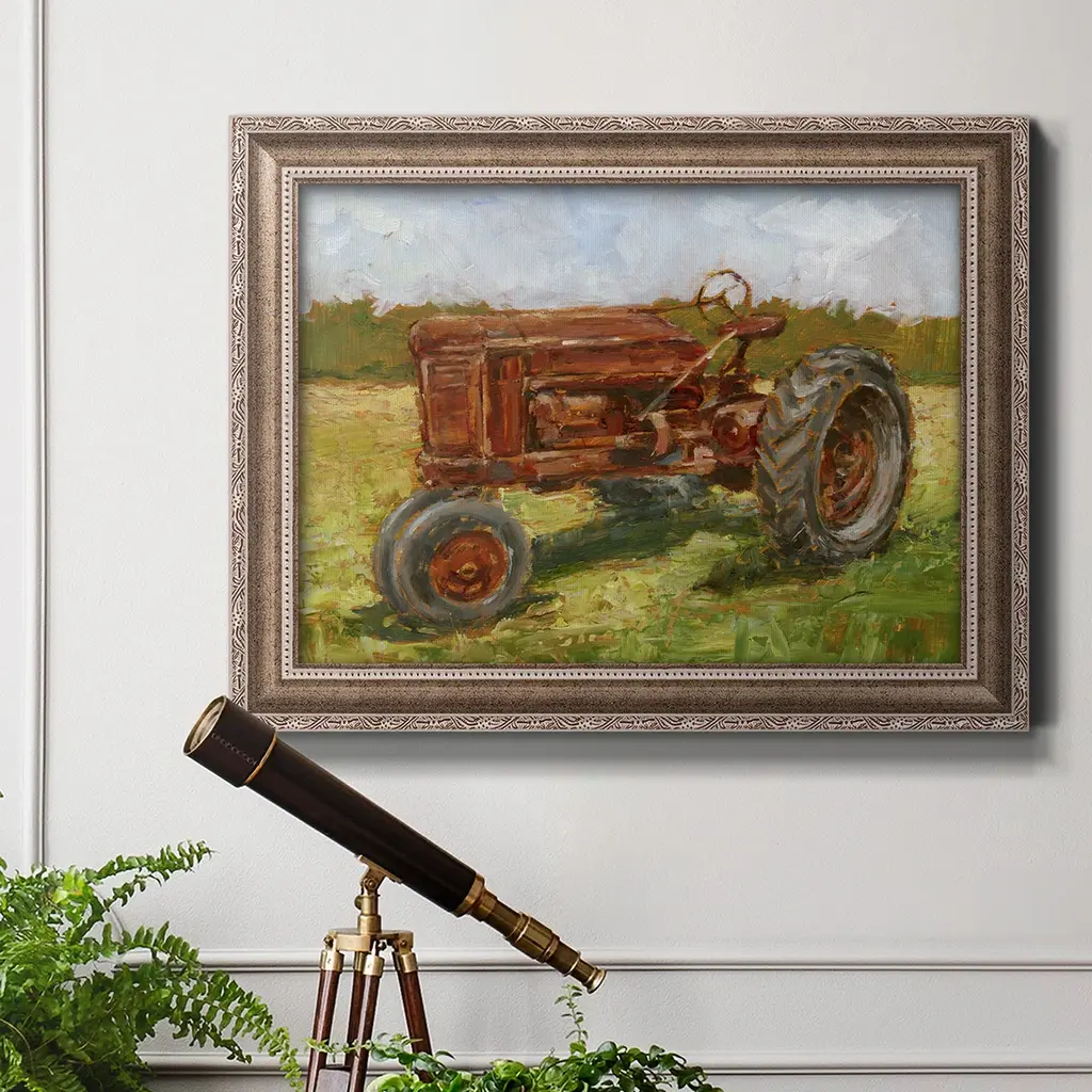 Rustic Tractors II Premium Framed Canvas- Ready to Hang A Premium Framed Canvas created to last. Framed in distressed wood and available in an array of sizes and colors Featuring a beveled a solid wood stretcher bar, each piece comes ready to hand 3 SIZES AVAILABLE 16''X20'' - Overall Size 18'X27'' - Overall Size 24''x36'' - Overall Size Each piece is made to order. Each piece comes with hanging hardware. Made in the USA Ready to Hang Giclee Paper Print Acrylic Glass Beveled Matt Board