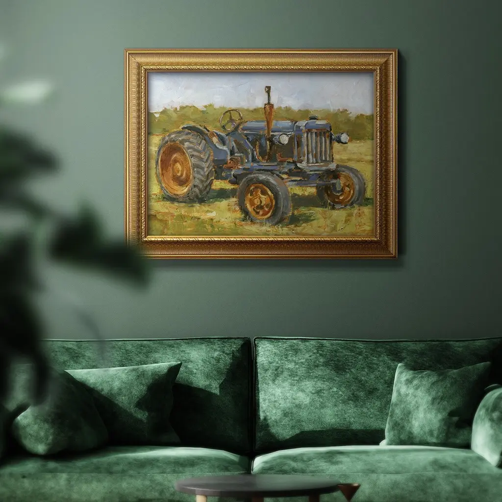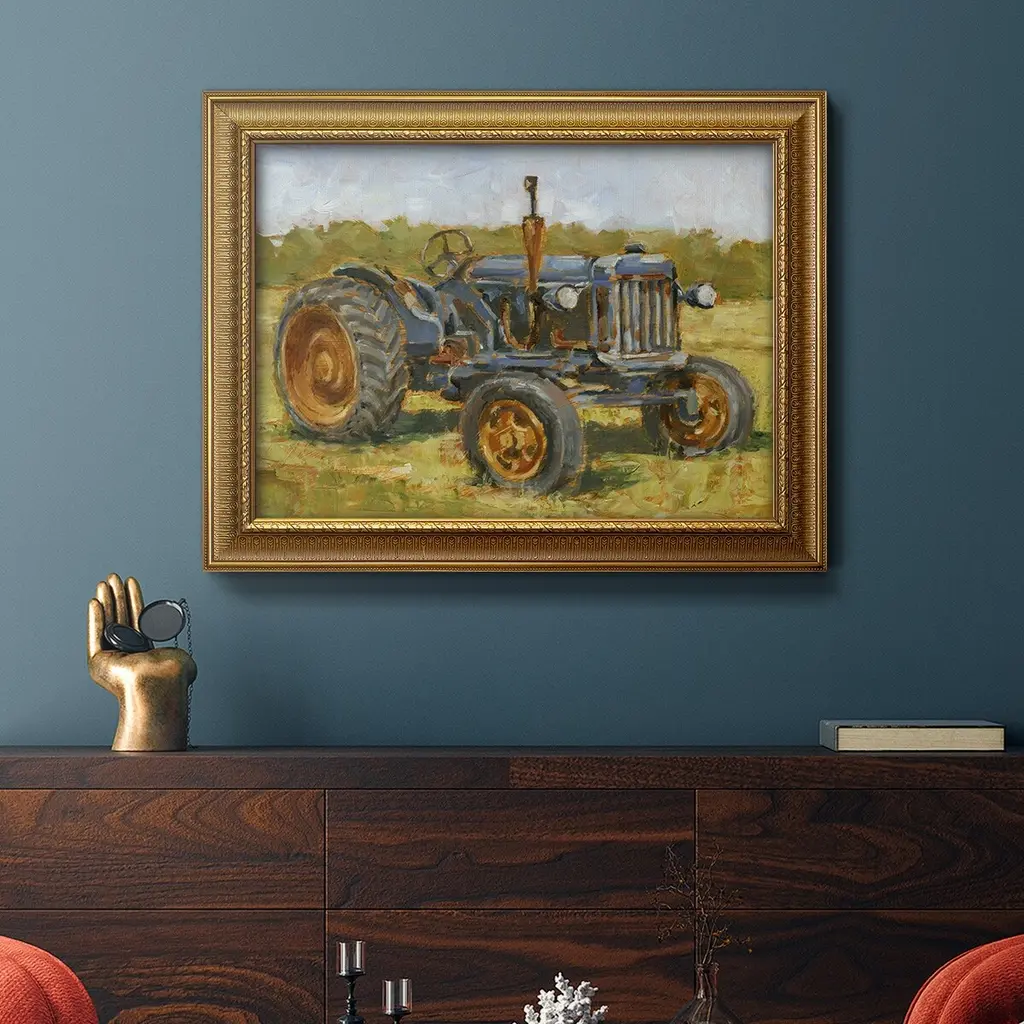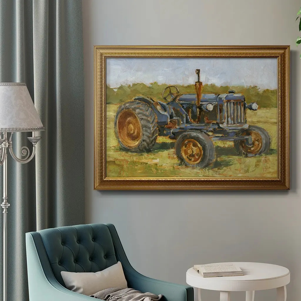 Rustic Tractors III Premium Framed Canvas- Ready to Hang A Premium Framed Canvas created to last. Framed in distressed wood and available in an array of sizes and colors Featuring a beveled a solid wood stretcher bar, each piece comes ready to hand 3 SIZES AVAILABLE 16''X20'' - Overall Size 18'X27'' - Overall Size 24''x36'' - Overall Size Each piece is made to order. Each piece comes with hanging hardware. Made in the USA Ready to Hang Giclee Paper Print Acrylic Glass Beveled Matt Board