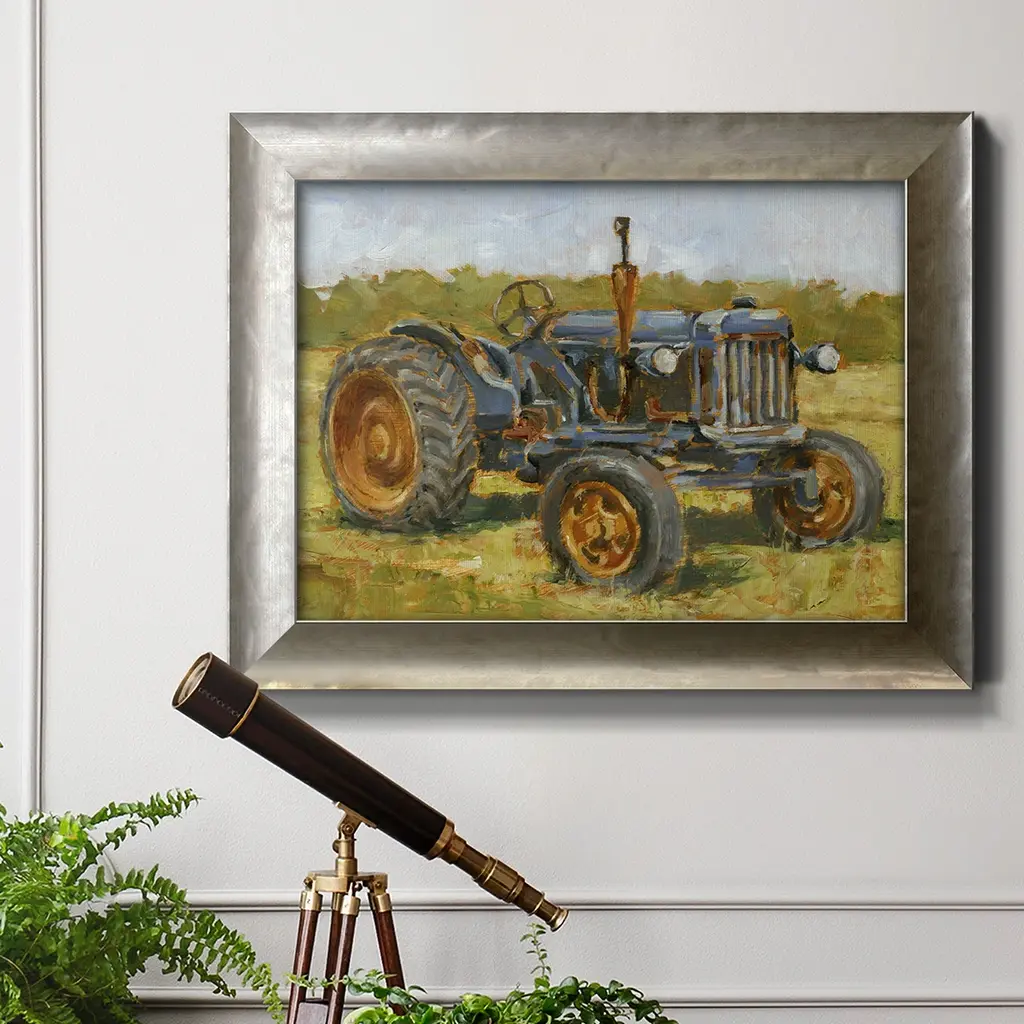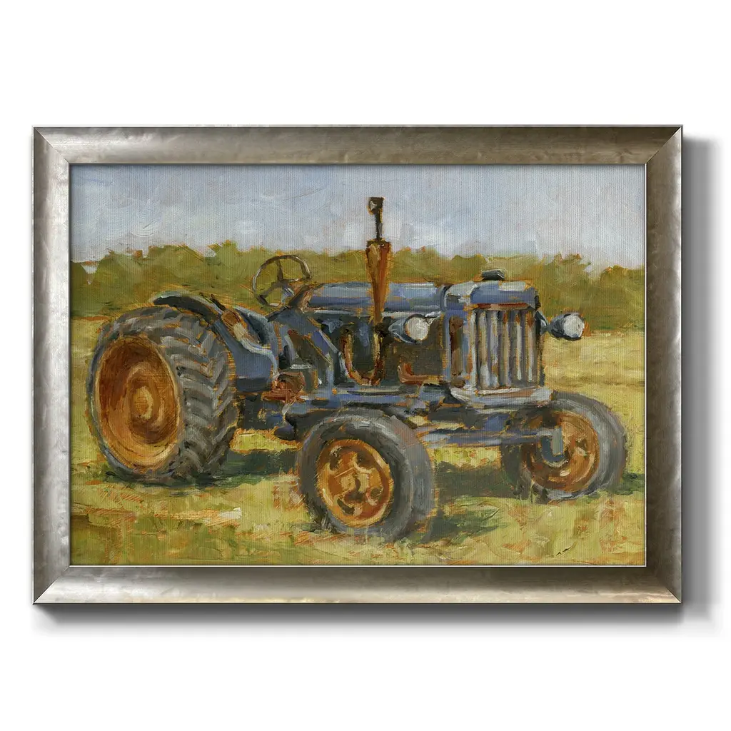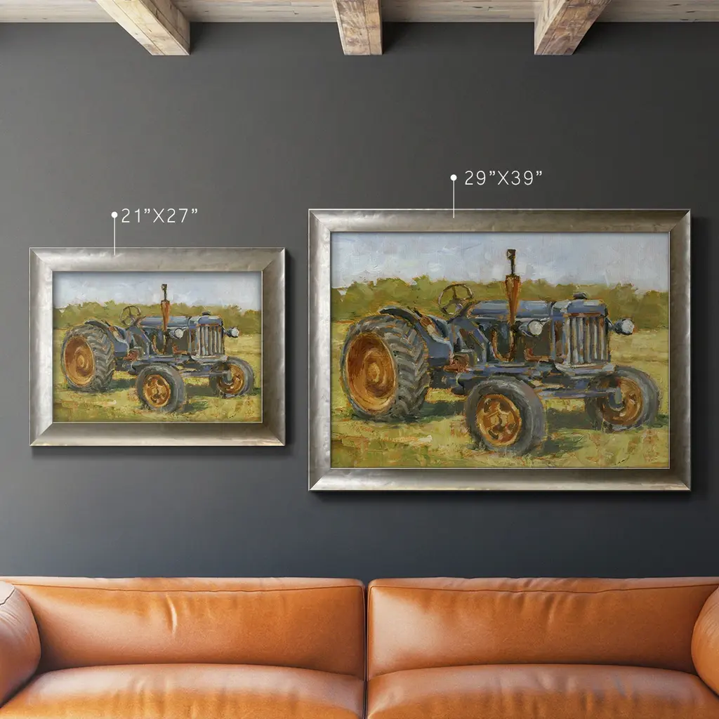 Rustic Tractors III Premium Framed Canvas- Ready to Hang A Premium Framed Canvas created to last. Framed in distressed wood and available in an array of sizes and colors Featuring a beveled a solid wood stretcher bar, each piece comes ready to hand 3 SIZES AVAILABLE 16''X20'' - Overall Size 18'X27'' - Overall Size 24''x36'' - Overall Size Each piece is made to order. Each piece comes with hanging hardware. Made in the USA Ready to Hang Giclee Paper Print Acrylic Glass Beveled Matt Board