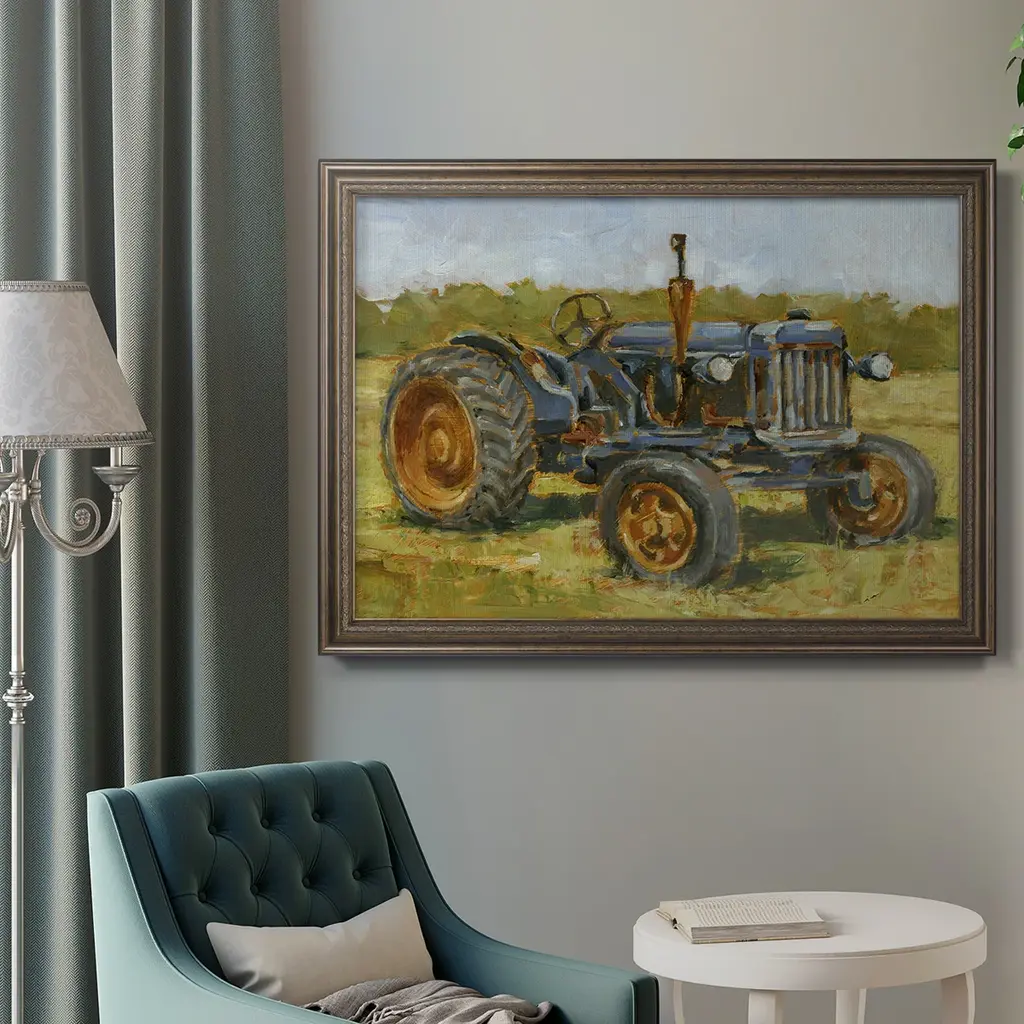 Rustic Tractors III Premium Framed Canvas- Ready to Hang A Premium Framed Canvas created to last. Framed in distressed wood and available in an array of sizes and colors Featuring a beveled a solid wood stretcher bar, each piece comes ready to hand 3 SIZES AVAILABLE 16''X20'' - Overall Size 18'X27'' - Overall Size 24''x36'' - Overall Size Each piece is made to order. Each piece comes with hanging hardware. Made in the USA Ready to Hang Giclee Paper Print Acrylic Glass Beveled Matt Board