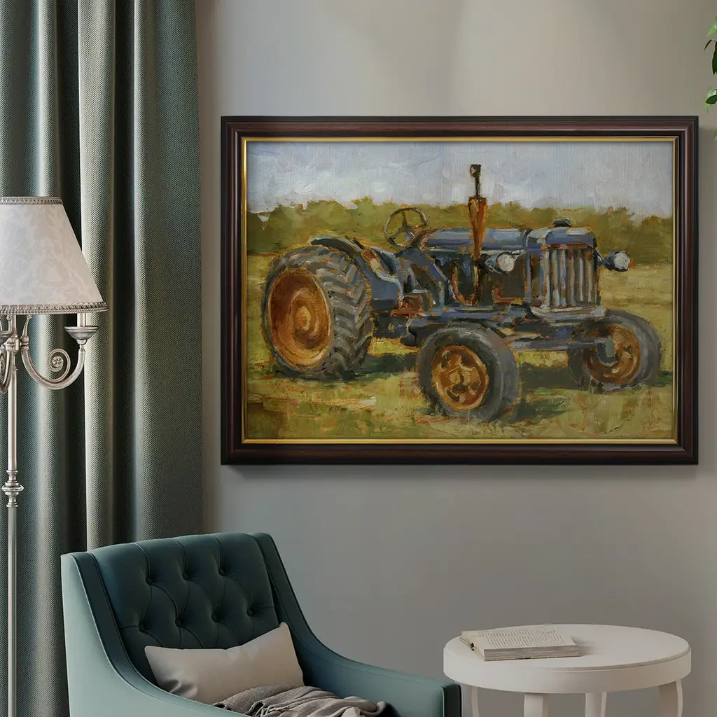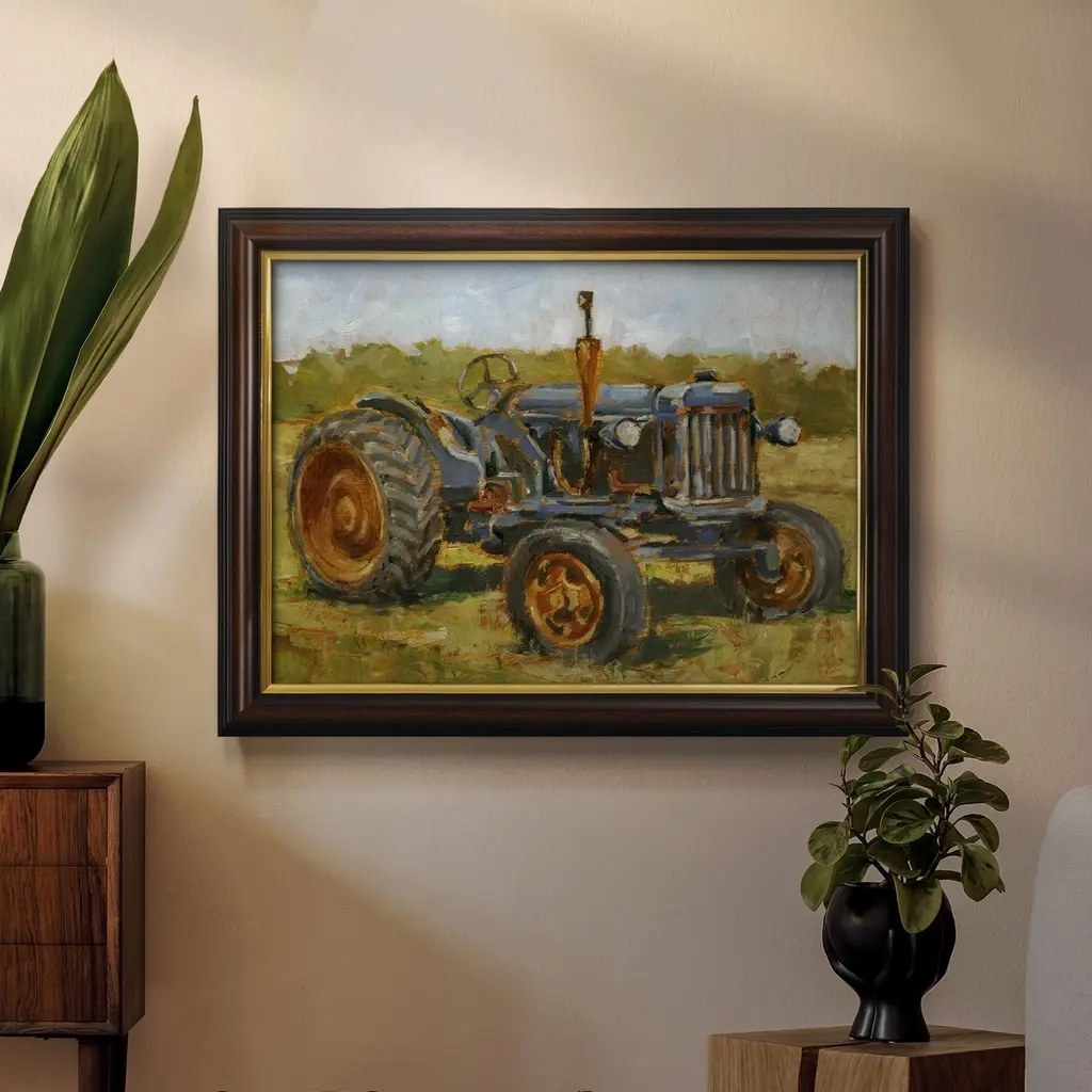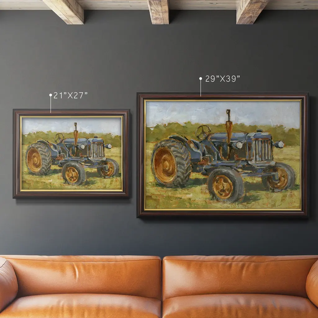 Rustic Tractors III Premium Framed Canvas- Ready to Hang A Premium Framed Canvas created to last. Framed in distressed wood and available in an array of sizes and colors Featuring a beveled a solid wood stretcher bar, each piece comes ready to hand 3 SIZES AVAILABLE 16''X20'' - Overall Size 18'X27'' - Overall Size 24''x36'' - Overall Size Each piece is made to order. Each piece comes with hanging hardware. Made in the USA Ready to Hang Giclee Paper Print Acrylic Glass Beveled Matt Board
