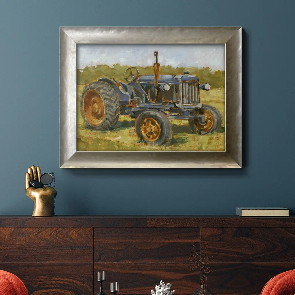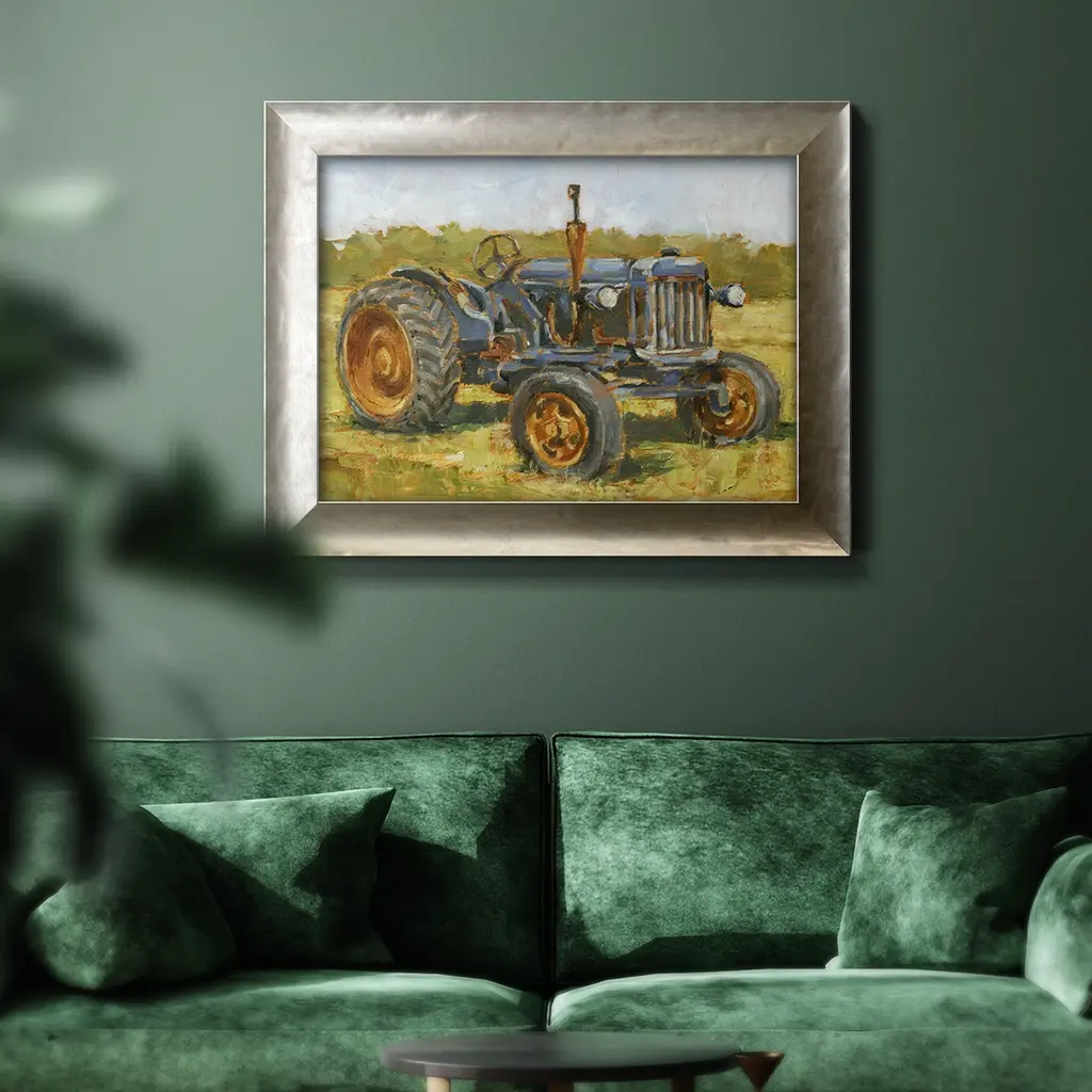 Rustic Tractors III Premium Framed Canvas- Ready to Hang A Premium Framed Canvas created to last. Framed in distressed wood and available in an array of sizes and colors Featuring a beveled a solid wood stretcher bar, each piece comes ready to hand 3 SIZES AVAILABLE 16''X20'' - Overall Size 18'X27'' - Overall Size 24''x36'' - Overall Size Each piece is made to order. Each piece comes with hanging hardware. Made in the USA Ready to Hang Giclee Paper Print Acrylic Glass Beveled Matt Board