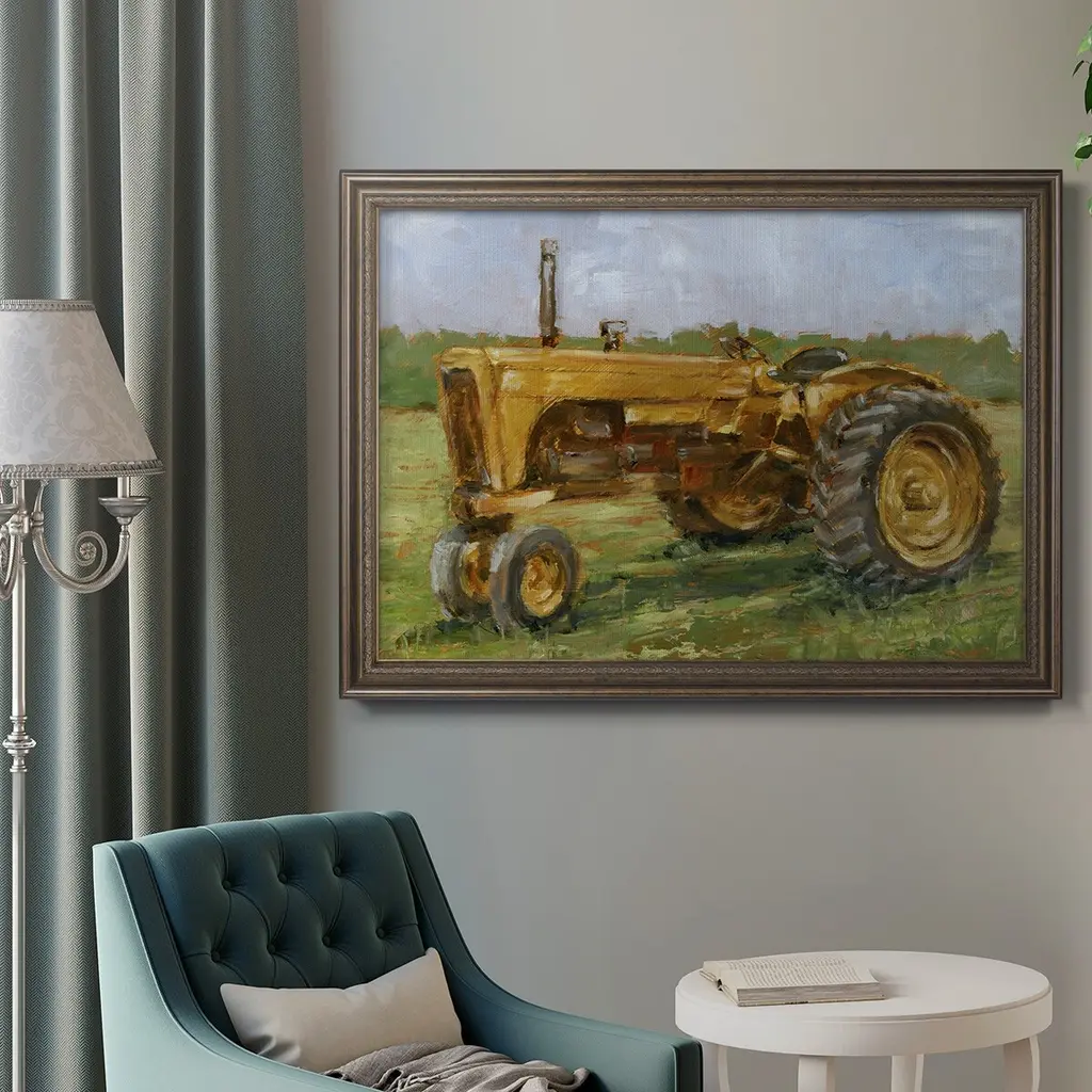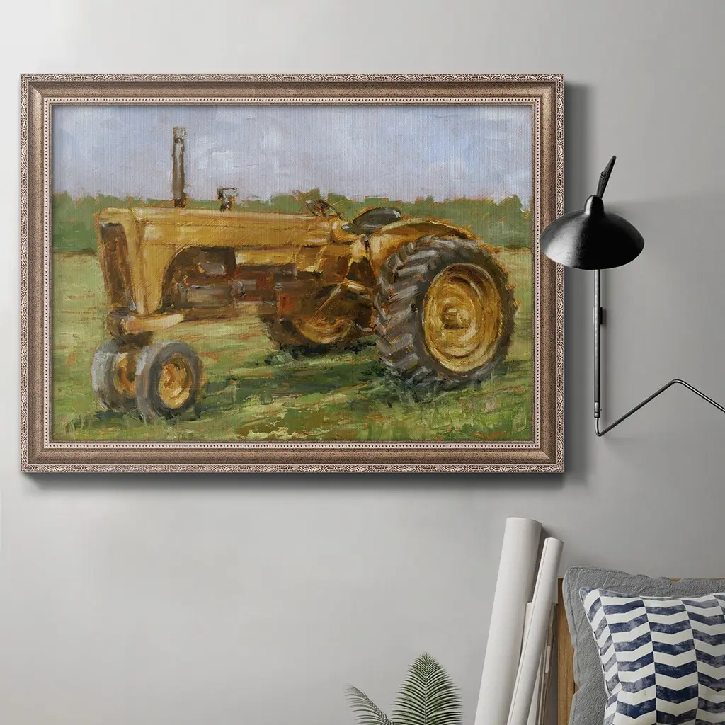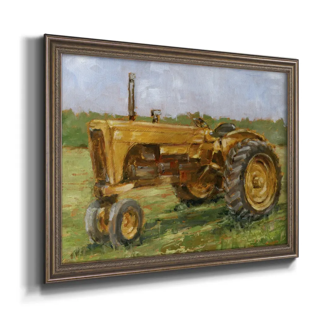 Rustic Tractors IV Premium Framed Canvas- Ready to Hang A Premium Framed Canvas created to last. Framed in distressed wood and available in an array of sizes and colors Featuring a beveled a solid wood stretcher bar, each piece comes ready to hand 3 SIZES AVAILABLE 16''X20'' - Overall Size 18'X27'' - Overall Size 24''x36'' - Overall Size Each piece is made to order. Each piece comes with hanging hardware. Made in the USA Ready to Hang Giclee Paper Print Acrylic Glass Beveled Matt Board