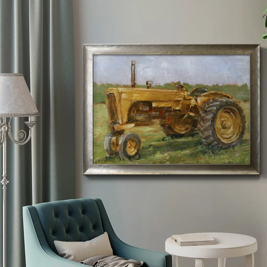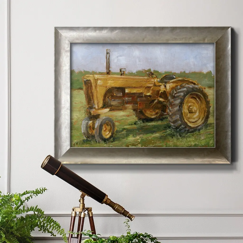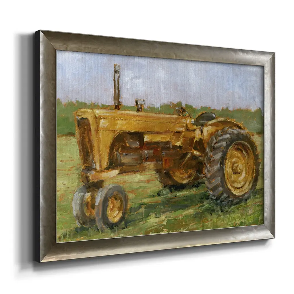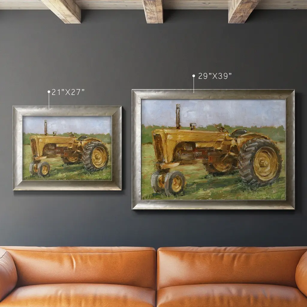 Rustic Tractors IV Premium Framed Canvas- Ready to Hang A Premium Framed Canvas created to last. Framed in distressed wood and available in an array of sizes and colors Featuring a beveled a solid wood stretcher bar, each piece comes ready to hand 3 SIZES AVAILABLE 16''X20'' - Overall Size 18'X27'' - Overall Size 24''x36'' - Overall Size Each piece is made to order. Each piece comes with hanging hardware. Made in the USA Ready to Hang Giclee Paper Print Acrylic Glass Beveled Matt Board