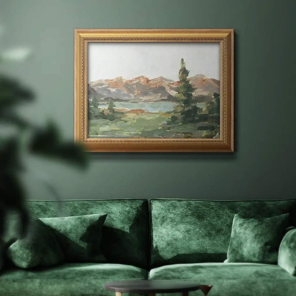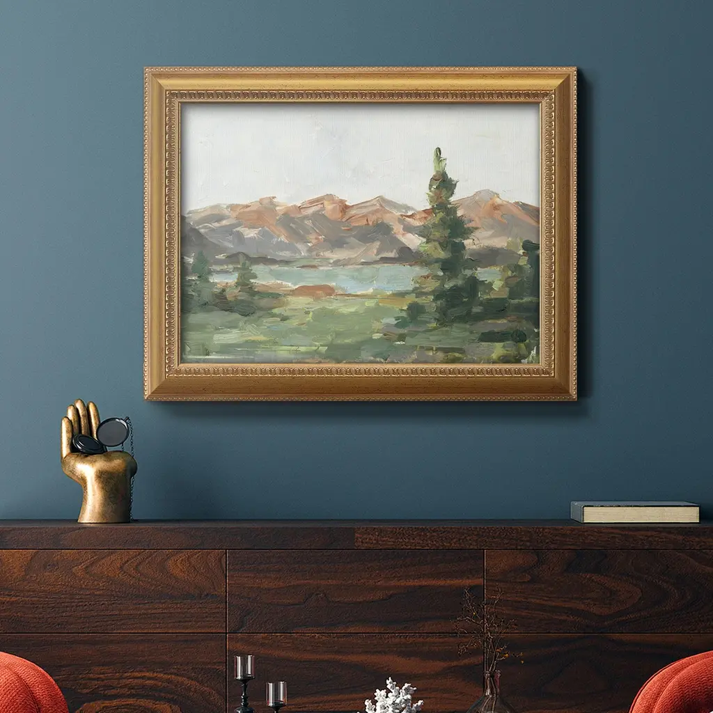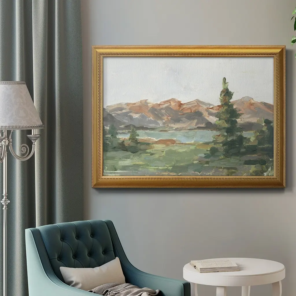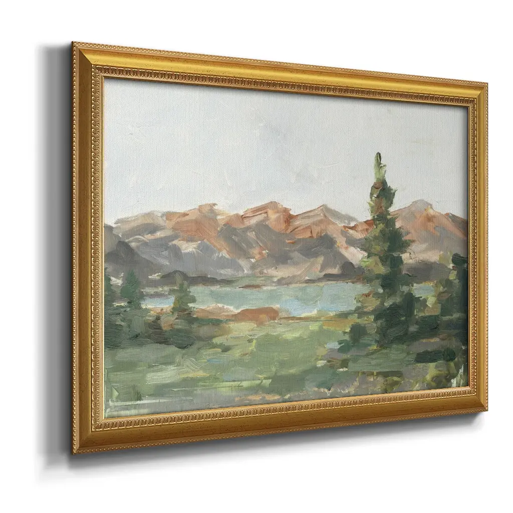 Rusty Mountains II Premium Framed Canvas- Ready to Hang A Premium Framed Canvas created to last. Framed in distressed wood and available in an array of sizes and colors Featuring a beveled a solid wood stretcher bar, each piece comes ready to hand 3 SIZES AVAILABLE 16''X20'' - Overall Size 18'X27'' - Overall Size 24''x36'' - Overall Size Each piece is made to order. Each piece comes with hanging hardware. Made in the USA Ready to Hang Giclee Paper Print Acrylic Glass Beveled Matt Board