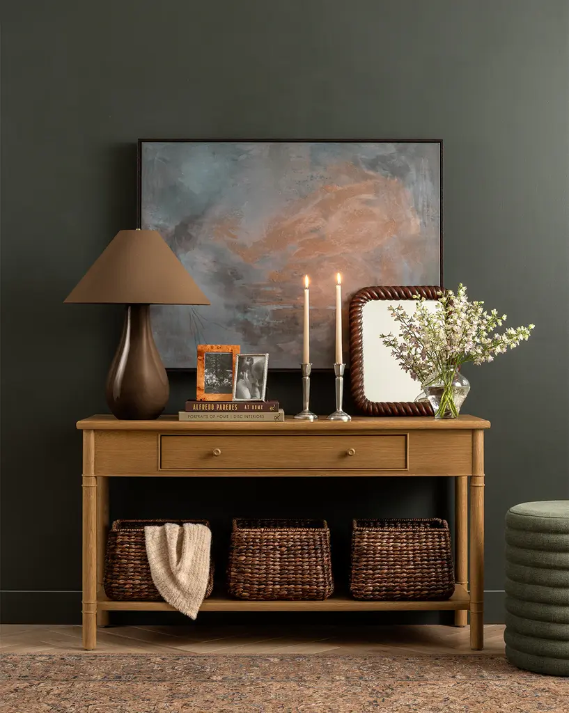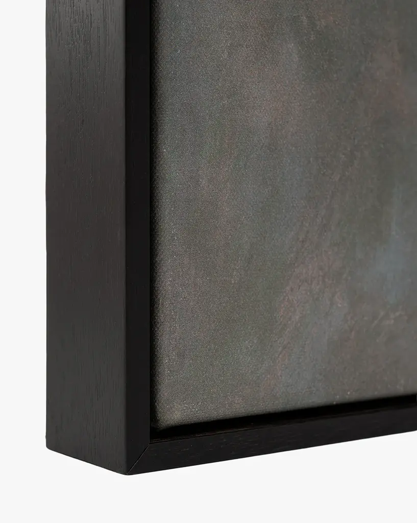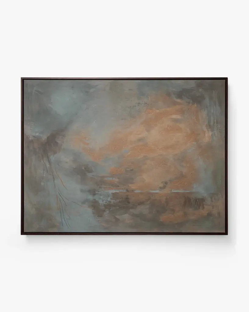 The Rusty Skies artwork captures the beauty of contrast, blending warm earthen tones with moody blue undertones. Its abstract depth evokes a shifting horizon, offering a striking balance of drama and serenity that anchors any space with artistic presence.