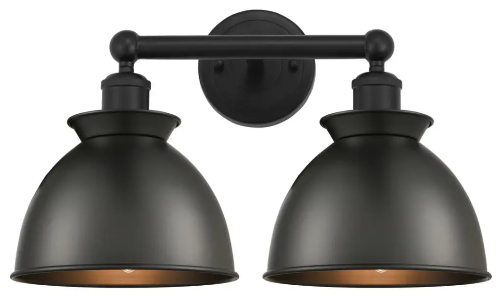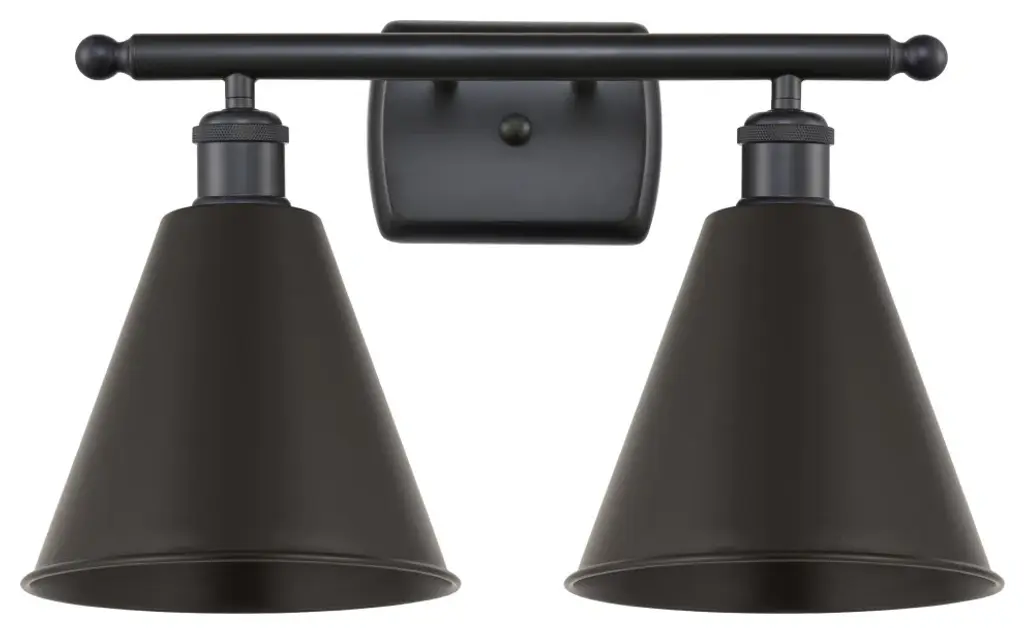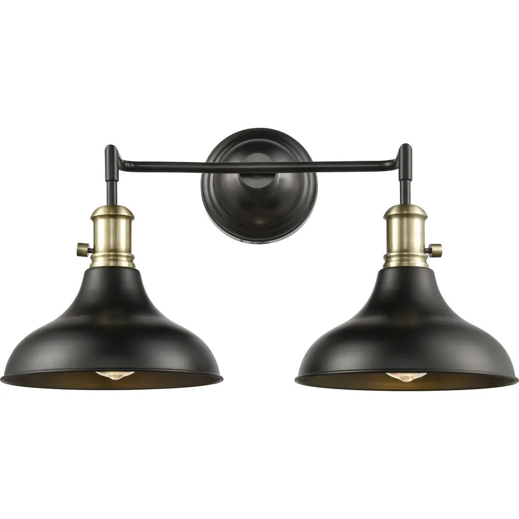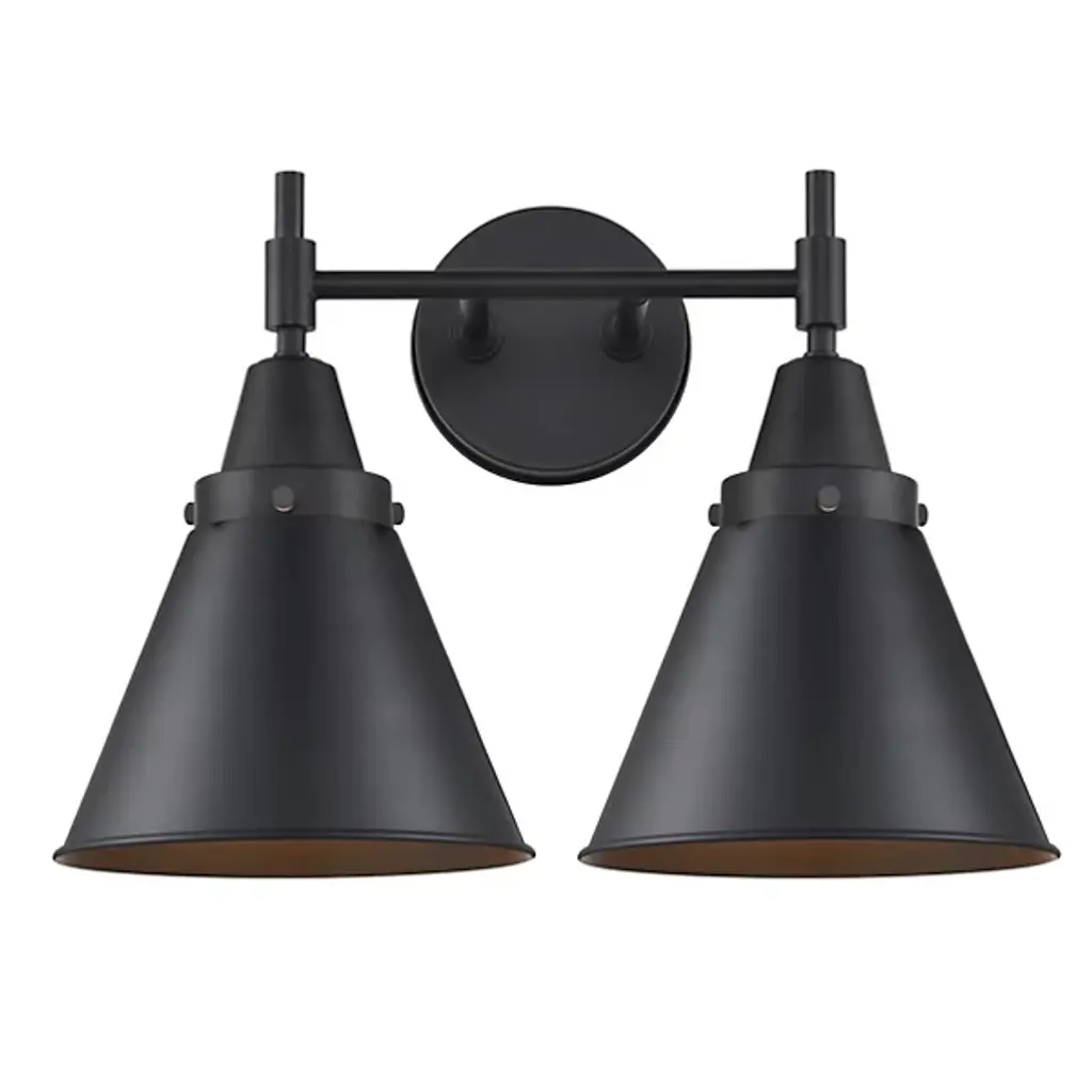 An appealing, sculptural addition to wall spaces. The Ruthie Cone Vanity Light from Alder & Ore adds a mix of contemporary style and retro refinement, extending from a low-profile disc wall plate via short, parallel rods that suspend a sleek crossbar that works best when suspended over a bathroom mirror. A slender stem held in a collar at each end of the crossbar suspends damp-listed lamping inside conical shades of matte-textured steel, dispatching focused pools of light below, accompanied by a glittering wash of ambient light that reflects off each shade’s interior.