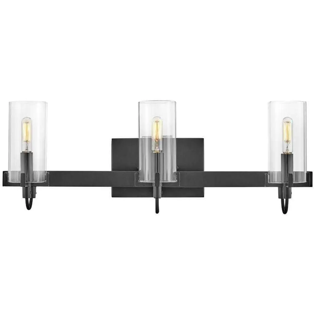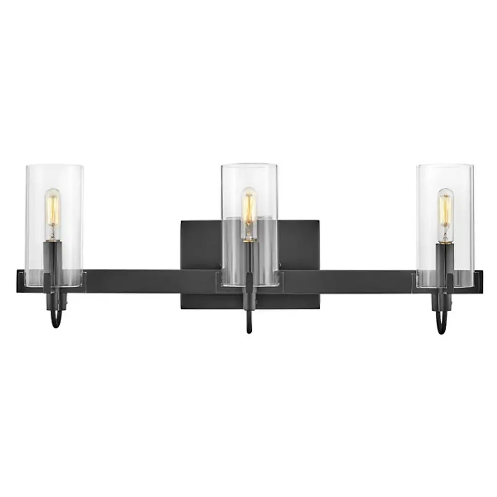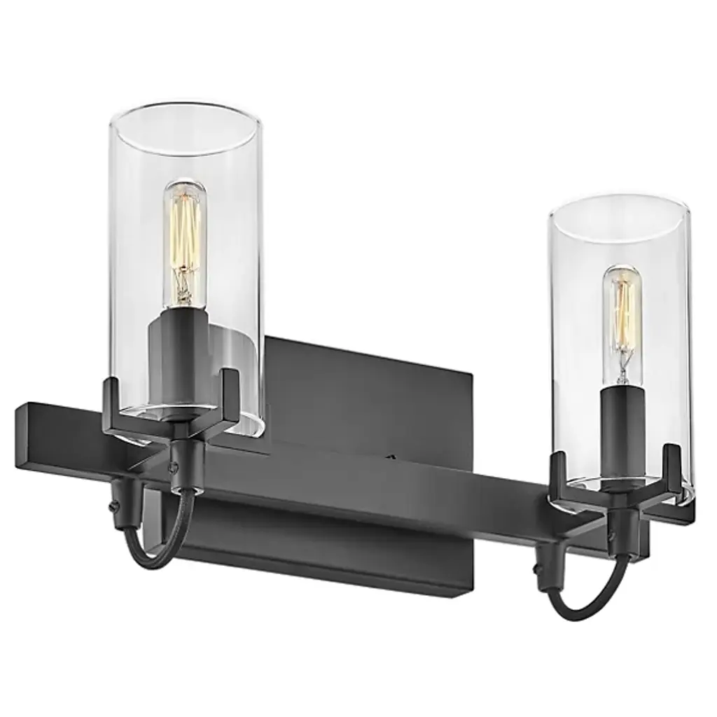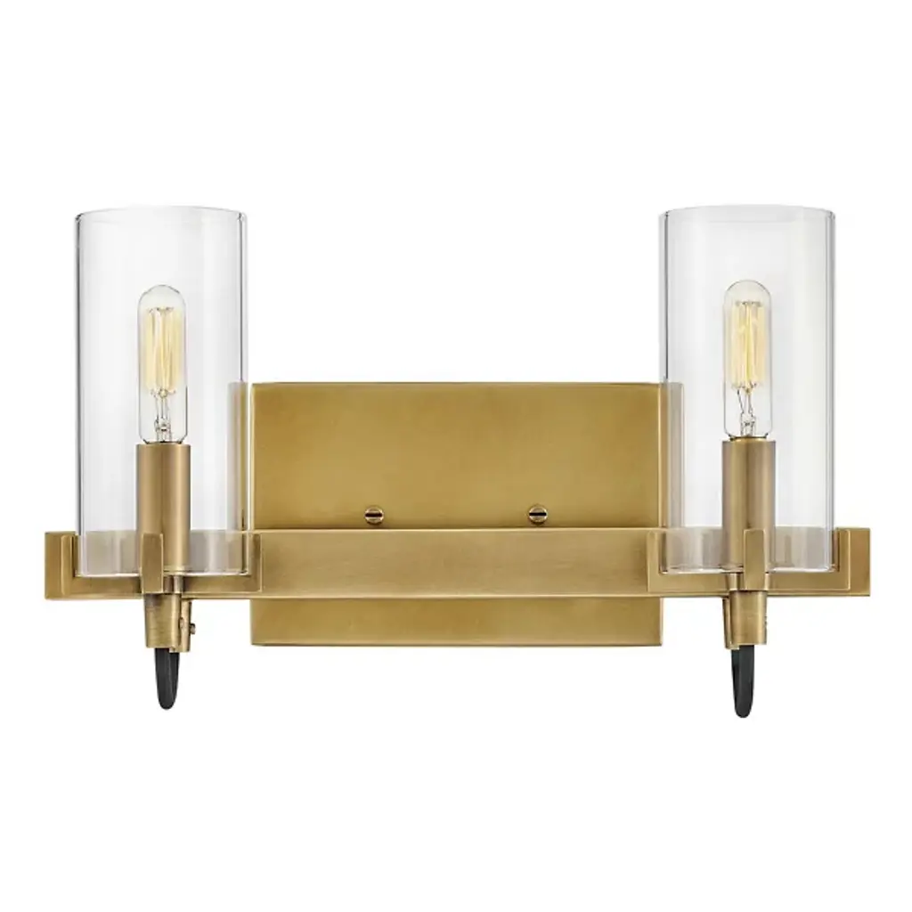 The Ryden Vanity Light from Hinkley Lighting is a versatile stunner, making efficient use of space with gorgeous geometry. The piece’s steel hardware proves solid and suitable for damp locations. A low-profile backplate mounts this piece securely with the glass facing up. Angular brackets in front produce a fabric cord that’s attractive in contrast. Clear glass shades surround the bulbs for an airy display. The bulbs come together to create an easy-going glow.