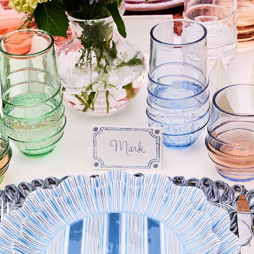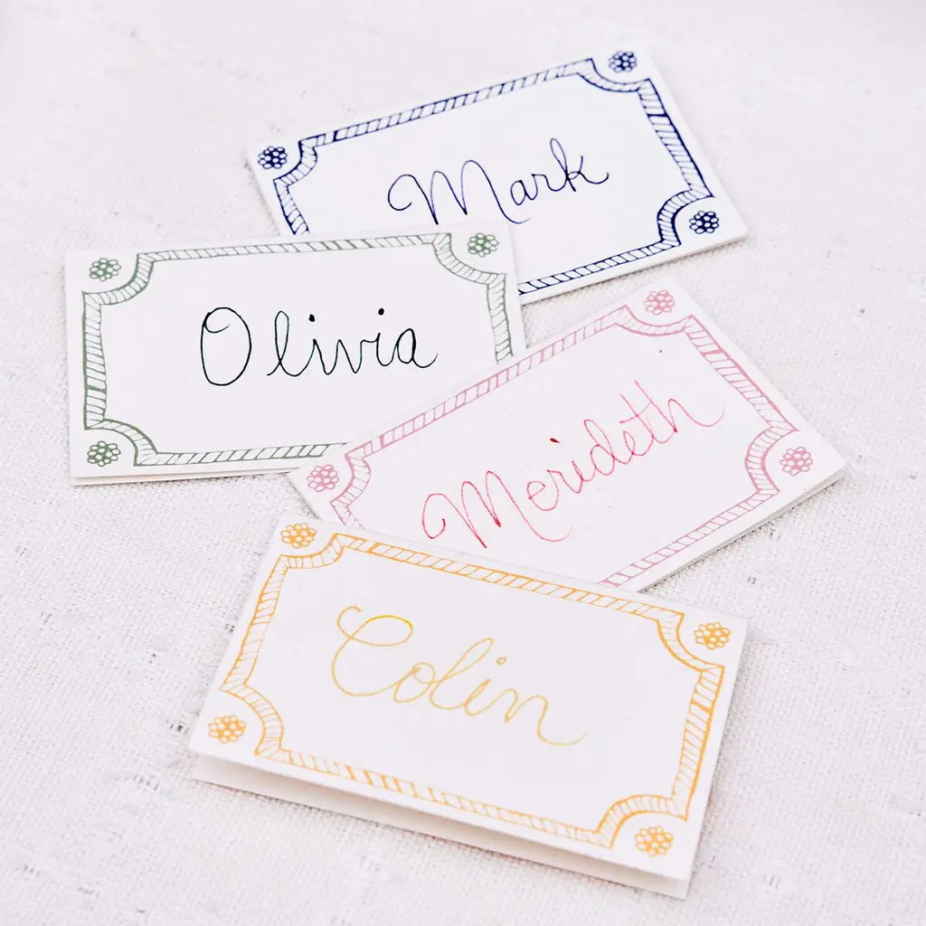 A delightful hand-sketched rendition of the classic Berry & Thread motif creates the border of these thoughtful place cards, bringing casual elegance to any table setting. Pairs perfectly with various collections and mixes and matches with other patterns seamlessly—whether it’s your best calligraphy for a formal affair, a silly question to spark conversation, or a fabulous way to label dishes for buffets.