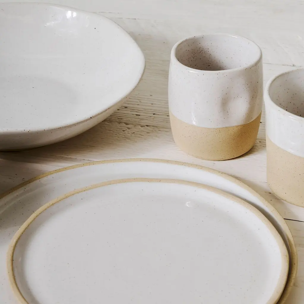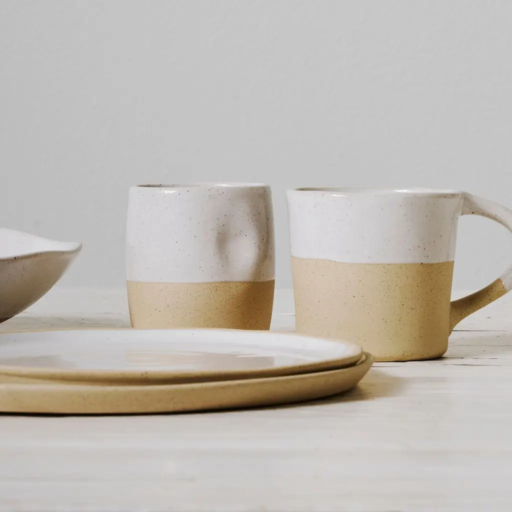 Designed by Glazed Garage, inspired by the coastal lifestyle, these hand-built naturally speckled clay cups offer uniqueness and functionality for everyday use. Sold as a set of two and available in two dreamy finishes.