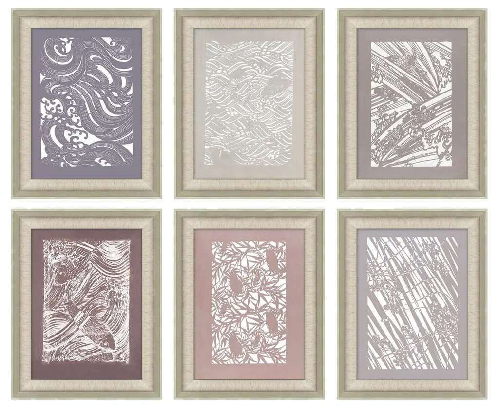 Designed by us and available only at One Kings Lane: Reproductions of the original, each traditional cut-paper artwork in this set has been updated in a contemporary palette. Printed on matte paper with a natural linen liner, each piece arrives framed and ready to hang.