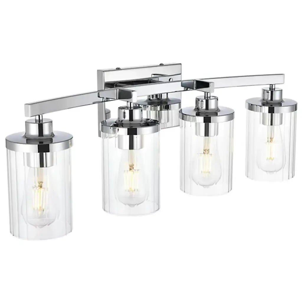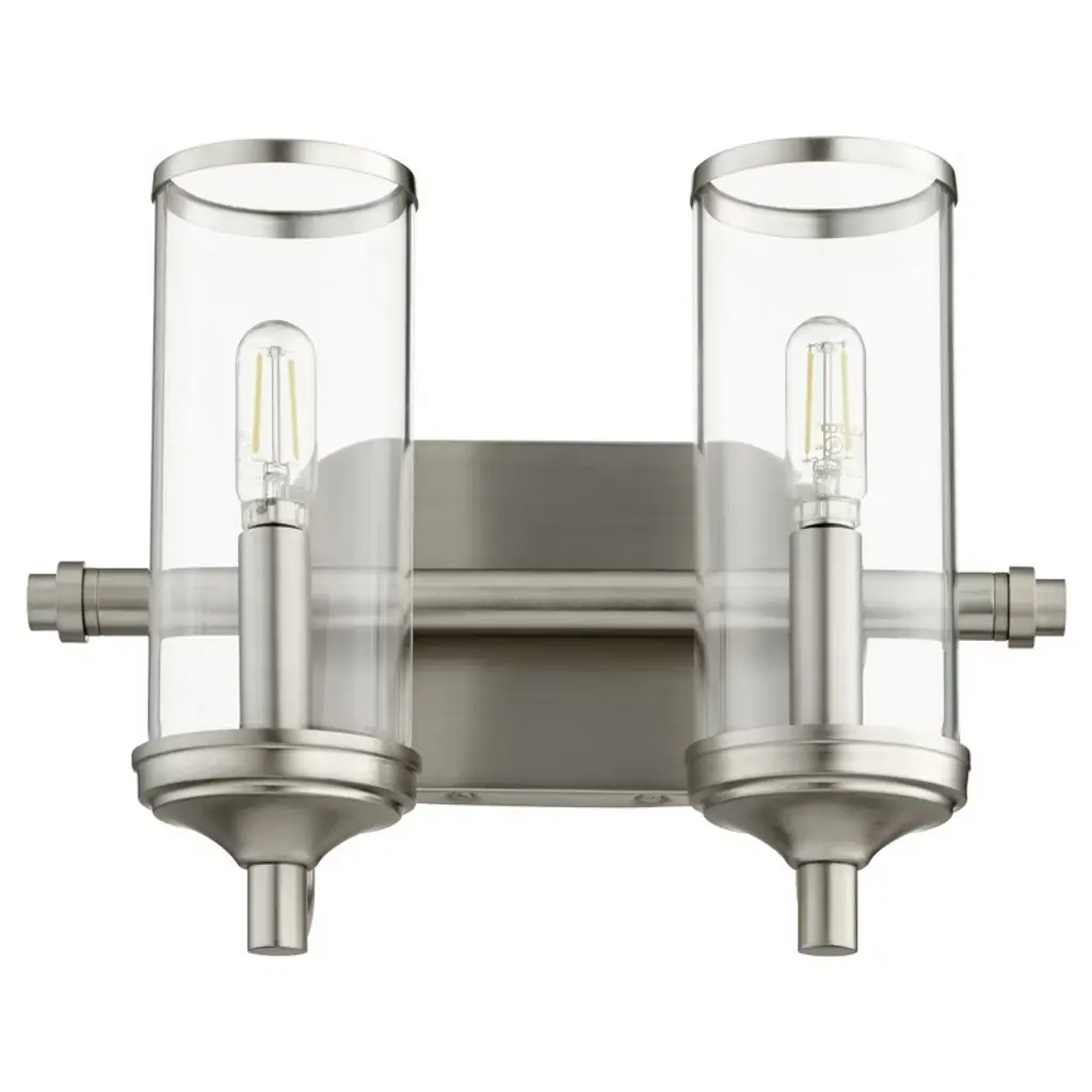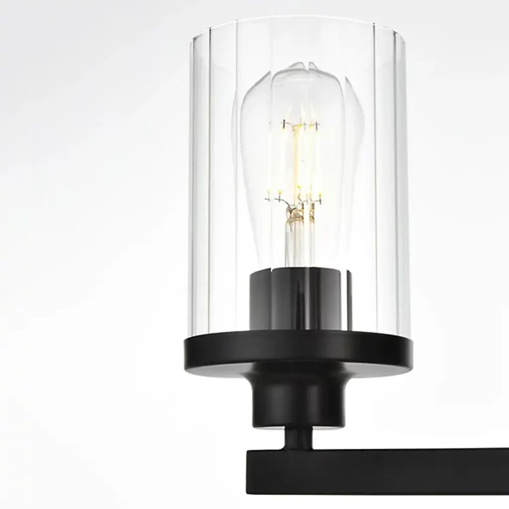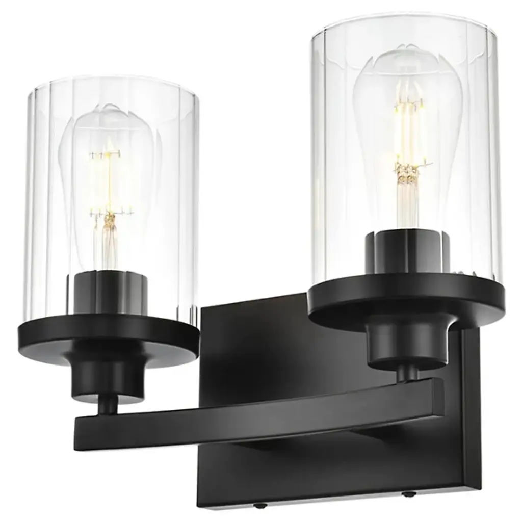 The Saanvi Vanity Light from Elegant Lighting redefines bathroom illumination with its dual-cylinder design. Like sentinels of light, two clear glass tubes stand at attention. The contrast between the dark metal framework and the transparent shades generates a graphic interest. This fixture's clean lines and geometric forms bring urban sophistication to your daily routines. The dimmable feature allows you to adjust the mood, from bright and invigorating for your morning regimen to soft and soothing for a relaxing evening soak.