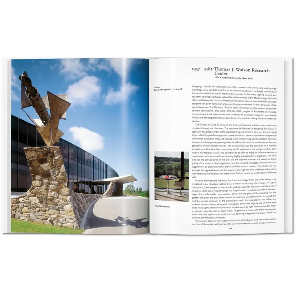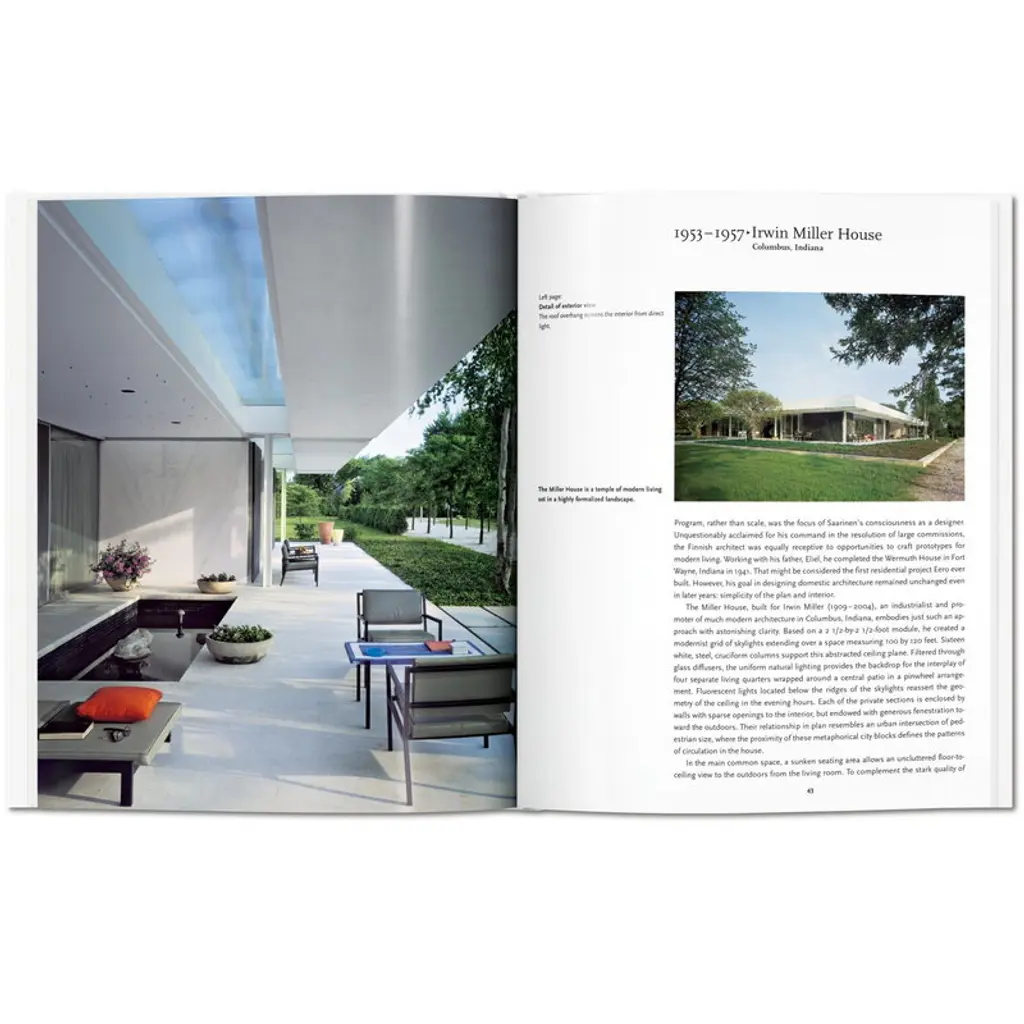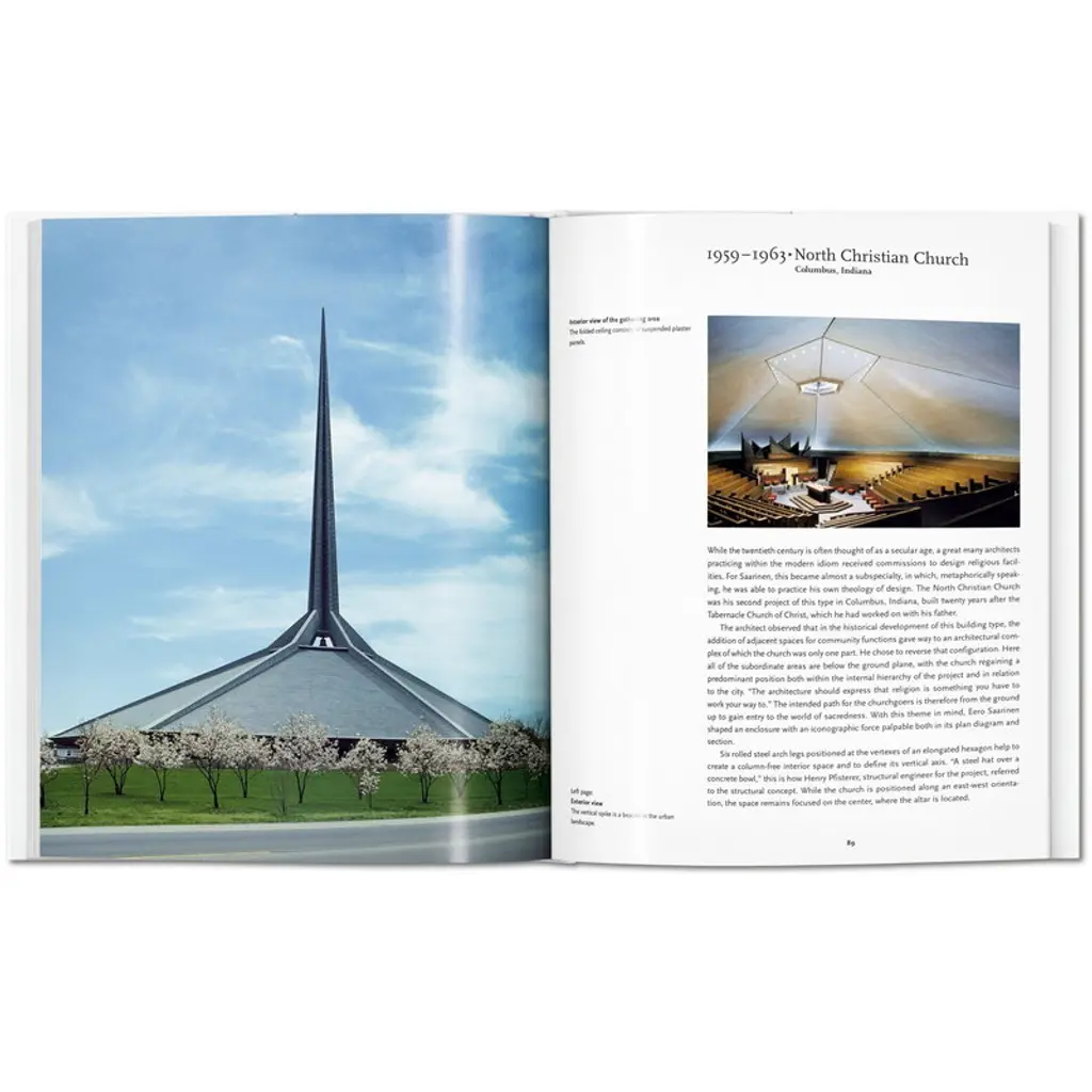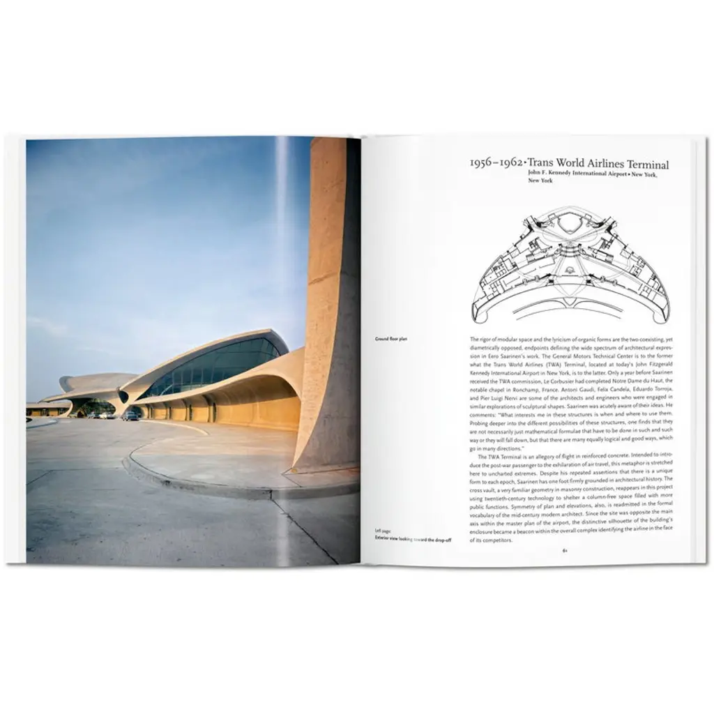 Published by Taschen, Saarinen covers the career of the Finnish-American architect and designer Eero Saarinen (1910–1961). Saarinen became famous for his visionary style that played with the contrasts of strong silhouettes and modernist lightness. Some of his most celebrated works are Washington D.C.’s Dulles International Airport, TWA terminal at JFK Airport in New York and Gateway Arch of St. Louis. The book was written by Pierluigi Serraino, an architect from the San Francisco Bay Area, and it is part of Taschen’s Basic Architecture series that presents life and work of internationally renowned architects with approximately 120 photographs, sketches and drafts. Editor of the collection is the German art historian Peter Gössel. From the ubiquitous Knoll “Tulip” chairs and tables to the TWA terminal at JFK Airport in New York, Eero Saarinen was one of the 20th century’s most prominent space shapers, merging dynamic forms with a modernist sensibility across art and architecture. With rich illustration tracing his life and career, this introduction follows Saarinen from his studies across his training all the way to his most prestigious projects, and explores how each of his designs brought a new dimension to the modernist landscape.