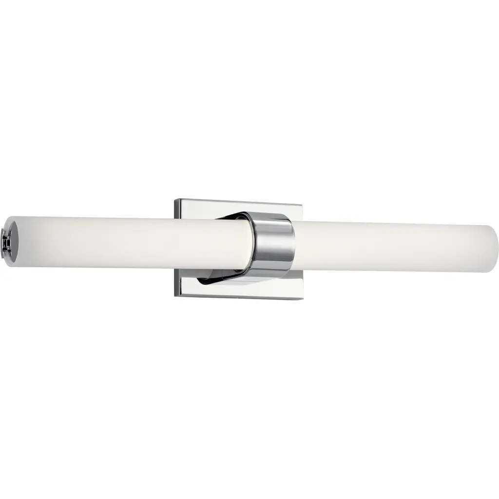 Streamlined, contemporary, efficient. The George Kovacs Saber LED Vanity Light embodies forward-thinking simplicity in a sleek, energy efficient fixture. Having a cylindrical cased Etched Opal glass shades and a shiny metallic finish, this piece can be mounted horizontally or vertically to enhance even tight quarters with flattering LED illumination.