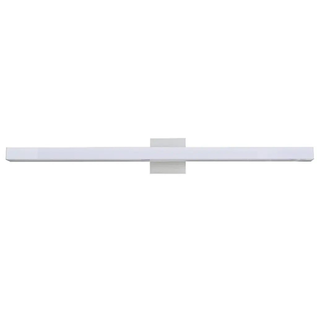 The Sabre LED Vanity Light by Abra Lighting is a minimalistic and sleek addition to master and guest bathrooms. With a long, rectangular white acrylic diffuser, this bath bar casts an energy-efficient layer of light while being supported by a crisp, hand-brushed aluminum frame and square backplate, giving this piece a unique textured look. Able to be installed in a vertical or horizontal orientation, the simple and clean silhouette of this fixture complements a variety of interior styles and brings a bright, practical touch to surroundings.