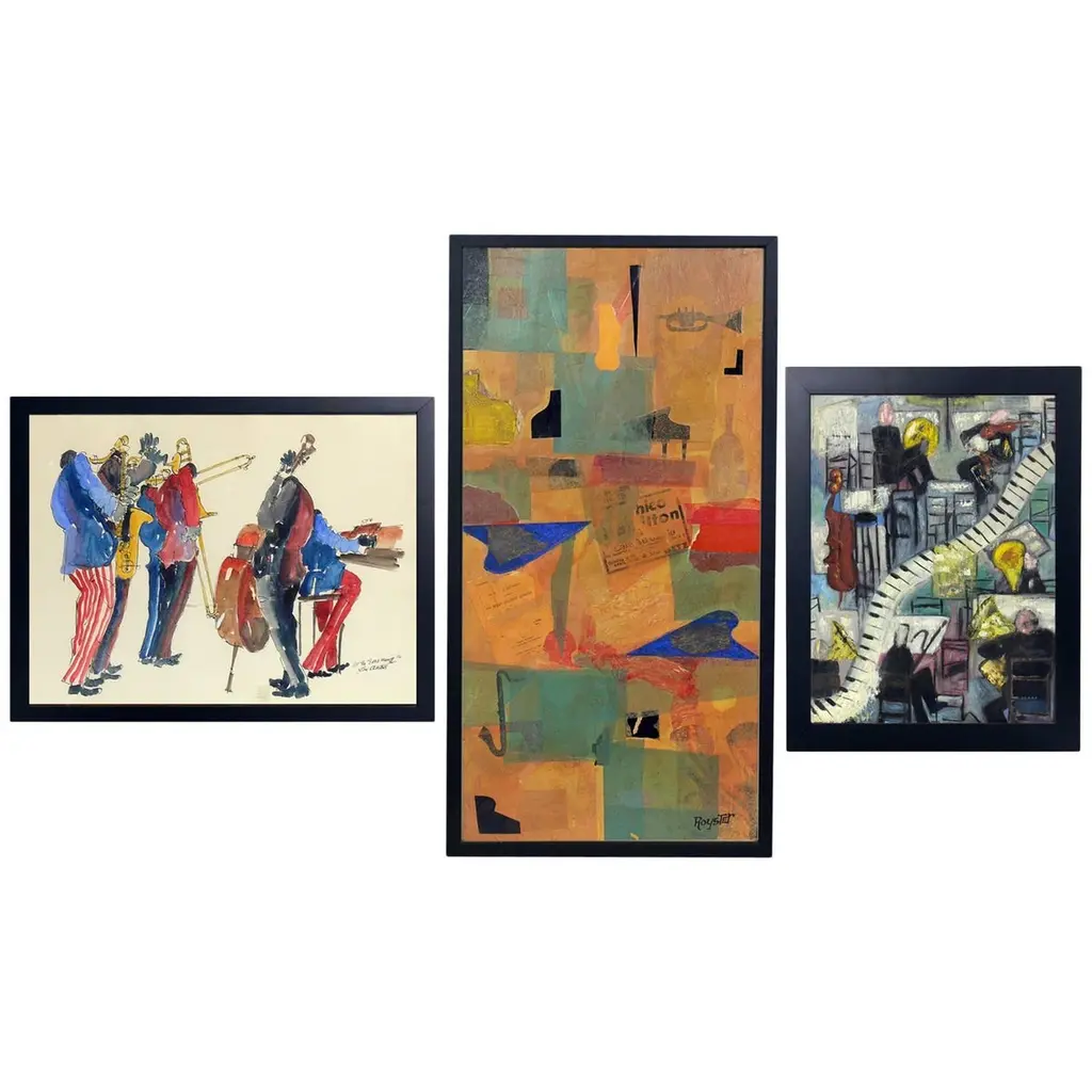 "Jazz Session" by Sacha Chimkevitch Hand Signed and Numbered by the artist Limited Edition Lithograph on Arches paper Hand Signed by the artist Paper Size: 21" x 29-1/2" Image Size: 19" x 27" Edition Size: 250 (contact seller for detail information) Condition is Mint. Never framed or mounted, no damage. Certificate of Authenticity & appraisal is included SACHA CHIMKEVITCH The spirit and drive of a man who has truly experienced life emanates from the work of Sacha Chimkevitch. Born August 17, 1920 in Paris. Chimkevitch began studying architecture at the Beauxs Arts in Paris, but studies were interrupted when he was called to serve his country and taken prisoner of war for five years. In 1945 he continued his studies with art courses at the Beauxs Arts in Paris, and Le Grande Chamiere. He is extremely well known as one of the foremost French architectural planners. Chimkevitch's first exhibit was at Poitiers in 1950. He then participated in the Premier Salon of Jazz in Paris, the Salon de le Peinture a L'eau, and exhibited his works at the Salon d'Automne in the Museum of Modern Art in Paris. Among many other expositions entered were expositions at Galerie Rousso in Paris, 1962; and in 1963 at Washington's Obelisk Gallery. In 1960 the French State purchased oils and watercolors created by Sacha Chimkevitch for its private collection. Then Air France commissioned him to create paintings for their offices in Manila and Hong Kong. The works of Chimkevitch have been published in American, German, English, and French publications. His prints are to be found in the Bibliotheque Nationale in Paris as well as many Parisian and Provincial French Galleries.