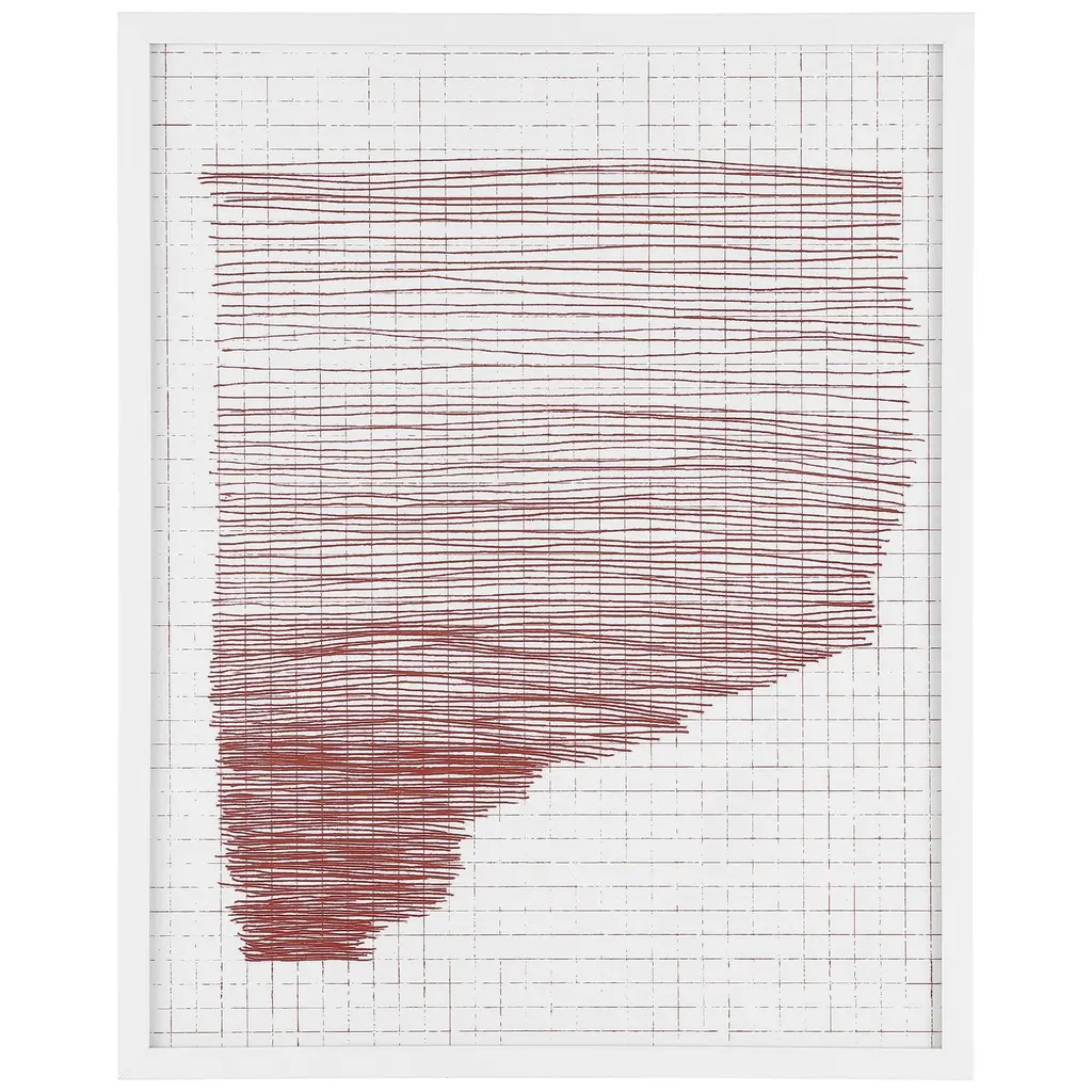 Enliven your home with the captivating style and charm of our, "The Architect's Daydream" framed wall art. Freehand lines are juxtaposed against a linear grid to explore the tension between organic and geometric forms. Its freehand lines feature a beautiful gradation in red to add a bright and charming pop of color to your home. Striking and impactful, our printed wall art adds dynamic character and depth to your living area, dining room, or home office.
