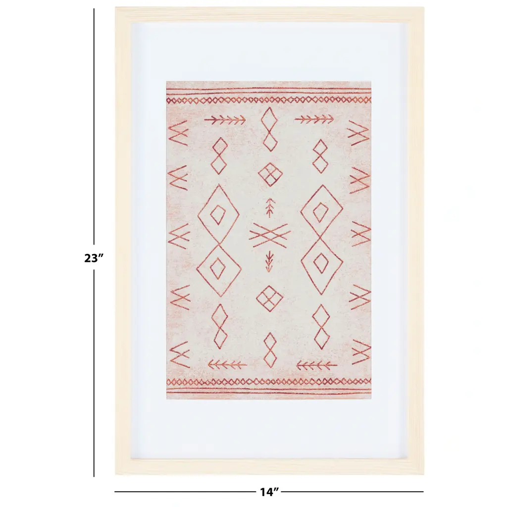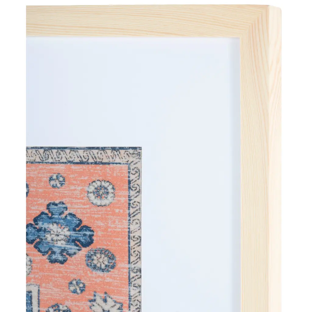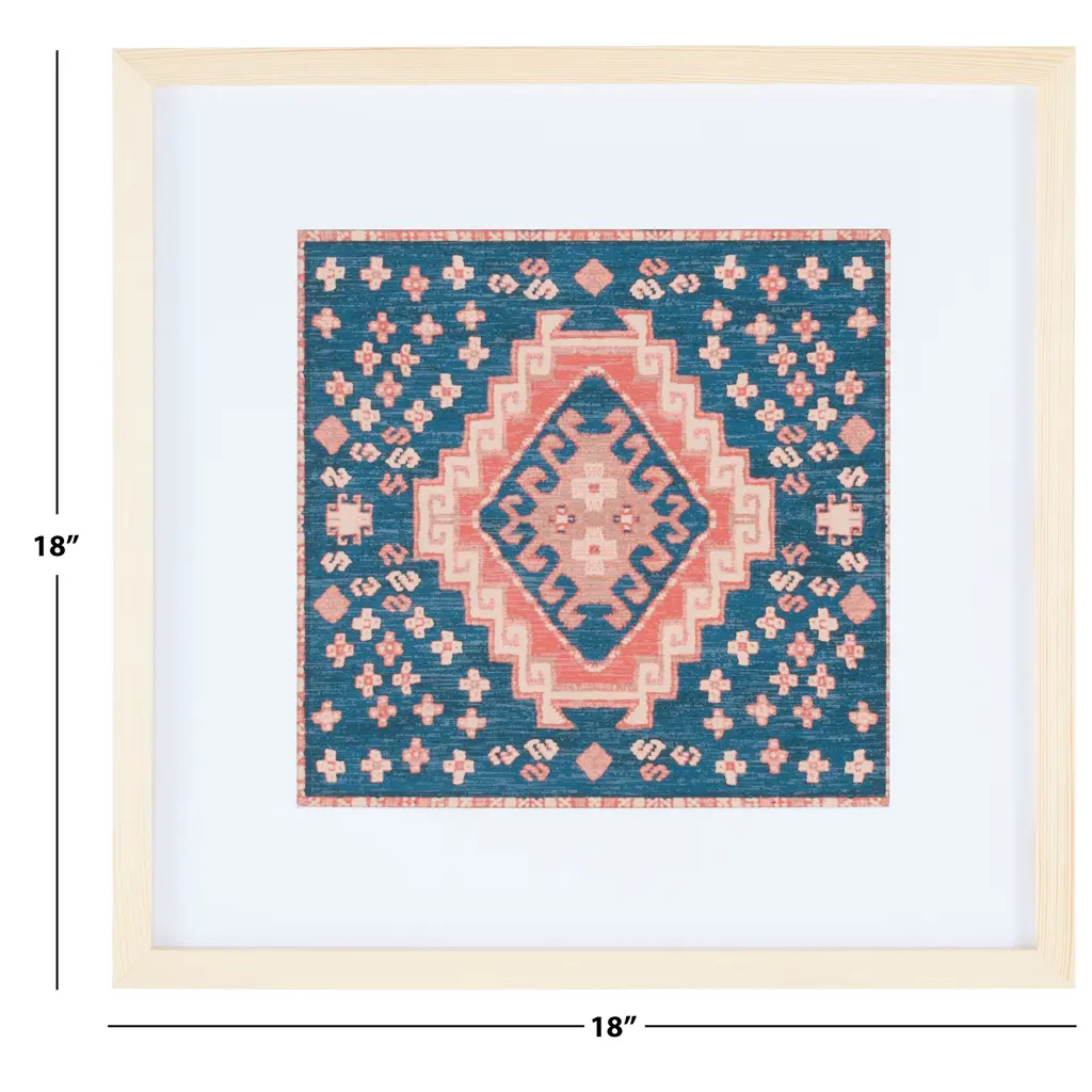 Give a lively update to your home with the chic design and lush textures for our Harjo framed textile wall art. Its abstract and fascinating motifs are accentuated with a strong sense of symmetry. Showcasing a soothing combo of blue and terracotta hues, the wall art lends a lively pop of color and motifs. It is elegantly encased in a wooden frame to serve as an artful focal point for your gallery wall.