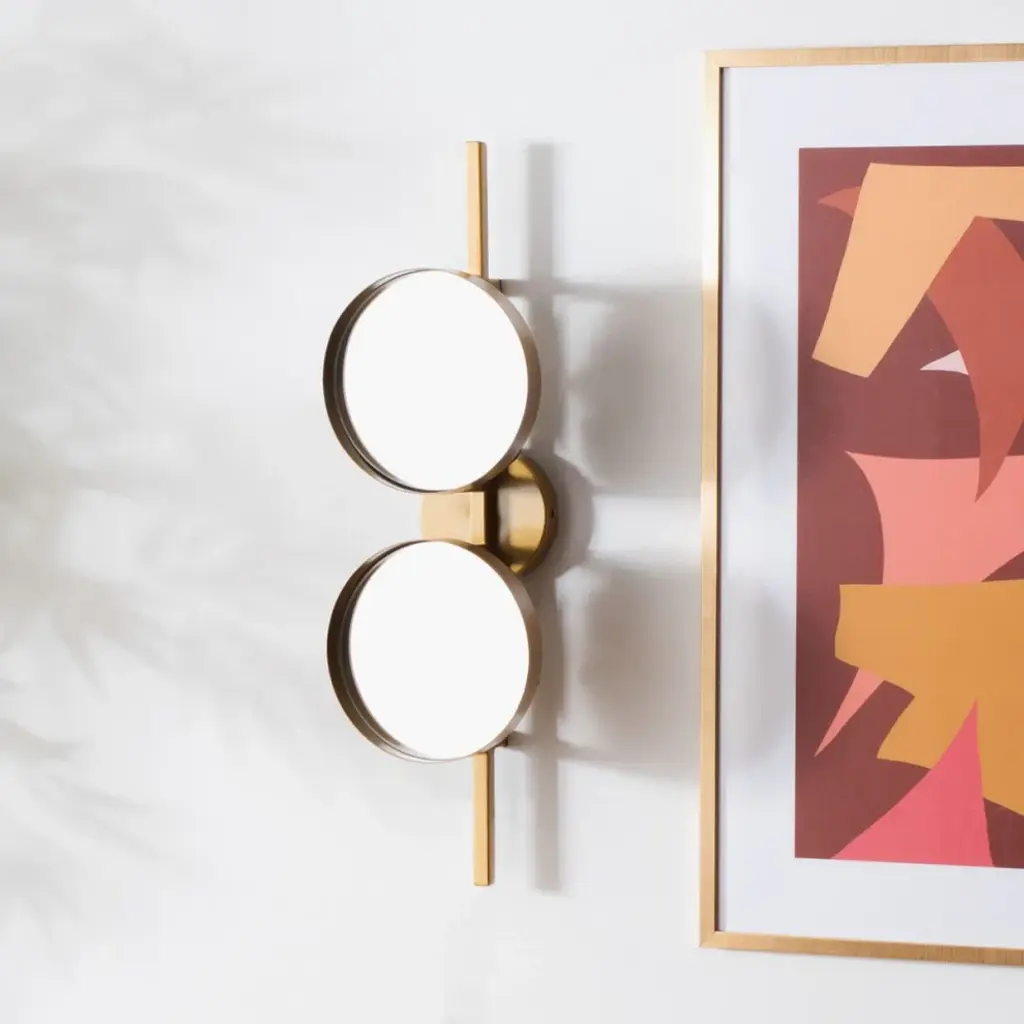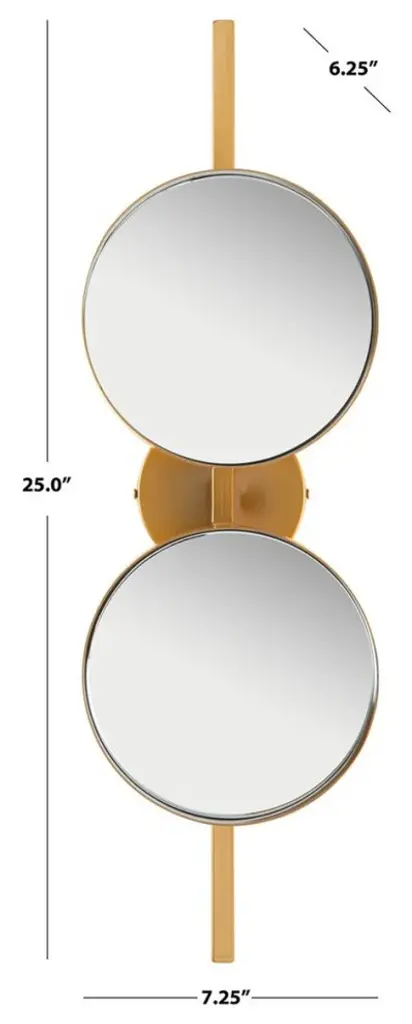 Brighten up any corner with the high-style and captivating appeal of our Ileva mirror. Two round mirrors are aligned on an iron base to serve as an alluring centerpiece for your home. A gleaming gold finish brings a polished touch of luxury to our mirror. It can be backlit with 2 light bulbs to emit a soft and pleasant light, elevating both the style and ambiance of your home. Our accent mirror can stand alone or be arranged in multiples to create a stylish and dramatic display in your entryway, living area, or bedroom.